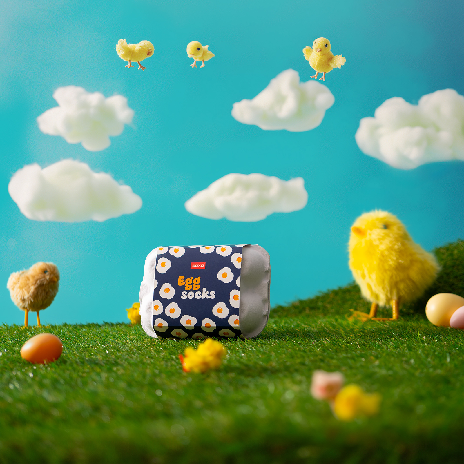 3 Paar von lustigen Socken mit Eggsmotiv in einzigartiger Verpackung | Damen-/Herrensocken | SOXO