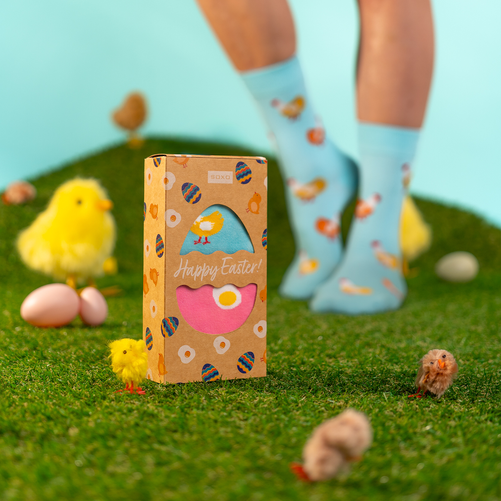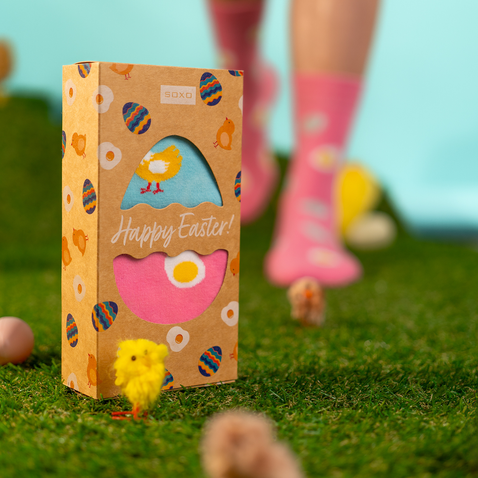 - 2 Paar Socken sind die beste Idee für Ostern. Haben Sie schon einmal so ausgefallene, als Geschenk verpackte Socken gesehen? Überraschen Sie Ihre Liebsten - sie werden begeistert sein!