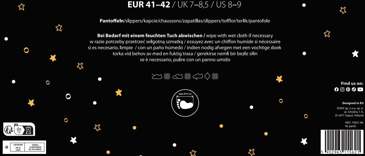 Hausschuhe: 100% Polyester; Sohle: 100% Thermoplastisches Gummi