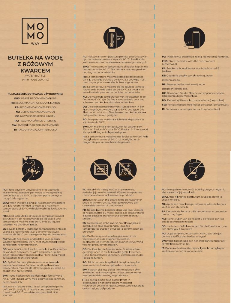 - Die rosa Quarz-Wasserflasche mit 450 ml Inhalt ist eine ideale Geschenkidee. Ein langlebiges und praktisches Produkt. Einfach zu bedienen und bequem zu transportieren. Stilvoll und elegant, wird die Flasche in jeder Situation funktionieren.