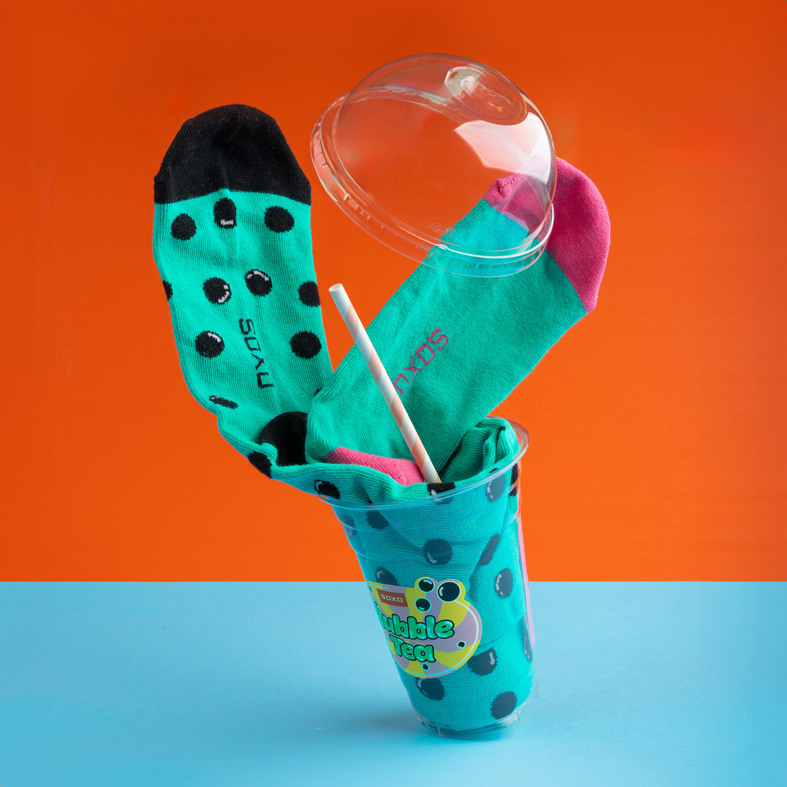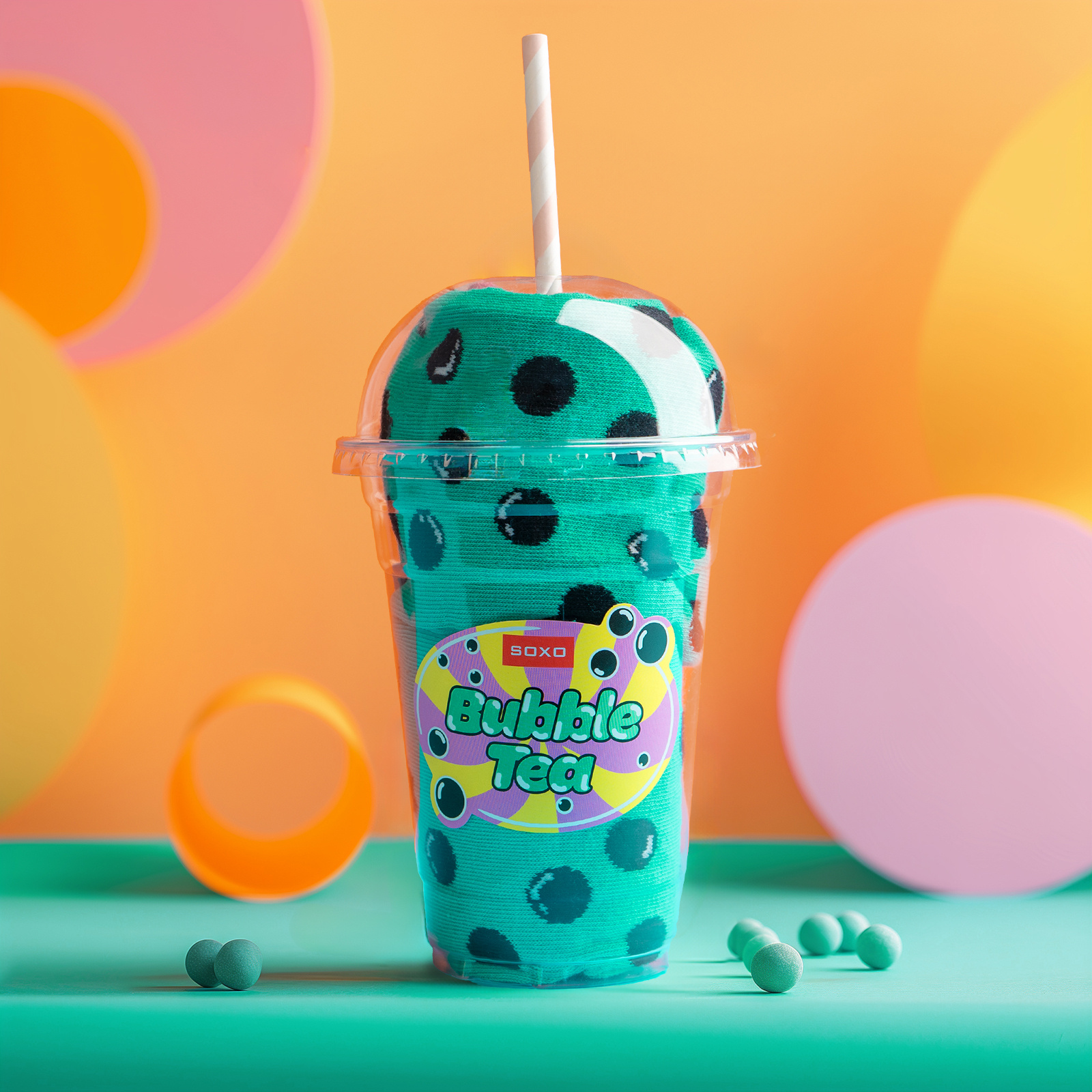 Sie suchen das perfekte Geschenk für Bubble Tea-Liebhaber? Bei Soxo machen wir die schönsten Träume wahr, indem wir Bubble Tea Socken kreieren. Sie werden Ihrem Styling Charme verleihen und die Langeweile in Ihrem Kleiderschrank vertreiben. Das berühmte süße Getränk, das seinen Ursprung in Taiwan hat, ist ein Elixier zur Verbesserung der Stimmung und zum Genuss dieses ungewöhnlichen Tees. Die farbenfrohen Teesocken mit süßem Kaviar passen zu jedem Ihrer Outfits und eignen sich perfekt als Geschenk zum Muttertag.