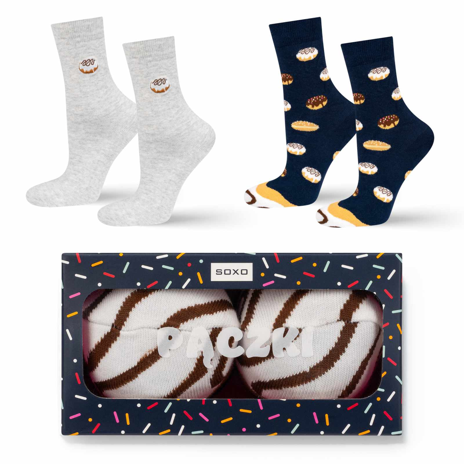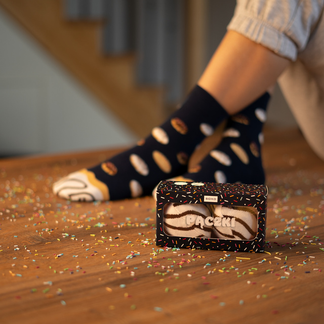 Fröhliche Socken mit einem aromatischen Kaffeemotiv sind in einer einzigartigen Verpackung verpackt. Von nun an können Sie die Kaffeesocken jeden Tag tragen. Das zarte Material wird jeden Morgen für Komfort und Bequemlichkeit sorgen. Unsere Kaffeesocken verleihen einen Hauch von Stil und sind ideal für Kaffeeliebhaber. In einer schönen stilvollen Verpackung finden Sie zwei Paar elegante Socken, die nicht nur die Langeweile aus Ihrem Kleiderschrank vertreiben, sondern auch eine modische Ergänzung zu Ihrem Styling sein werden. Dieses Modell wird Sie morgens oder nach einem anstrengenden Tag auf Trab bringen.