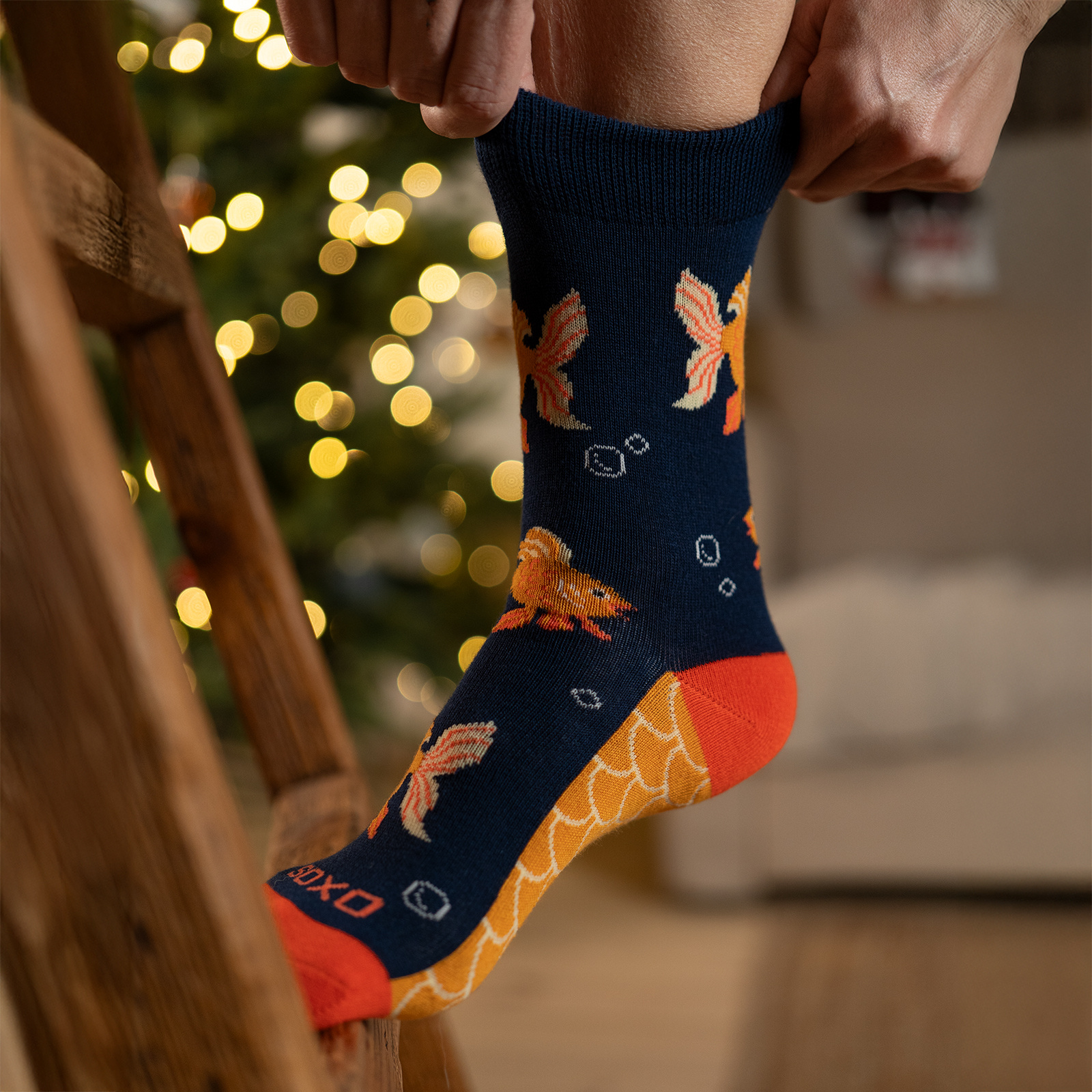 Die bunten Goldfischsocken sind keine gewöhnlichen Socken - sie sind ein einzigartiges Geschenk, mit dem Sie Ihren Liebsten eine große Freude machen werden. Perfekt für verschiedene Anlässe, von Geburtstagen bis zu Feiertagen. Dieses Modell ist ideal für experimentierfreudige Menschen, die sich gerne von der Masse abheben und ungewöhnliche Ergänzungen ihrer Garderobe schätzen.