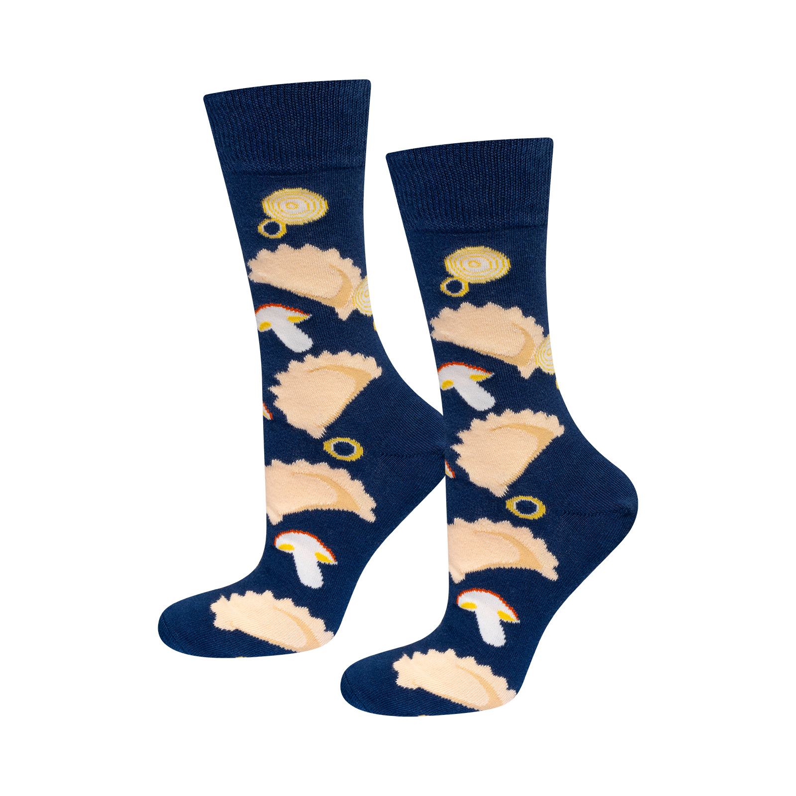 Wenn du lustige Socken wie diese mit einem Pierogi-Motiv auswählst, zeigst du, dass du keine Angst hast, mit Mode zu experimentieren, und dass du Originalität schätzt. Bunte und gemusterte Socken sind auch eine großartige Möglichkeit, alltägliche Outfits aufzupeppen – sie passen sowohl zu lässiger, alltäglicher Kleidung als auch zu formelleren Kombinationen, wo sie einen interessanten Akzent setzen können.