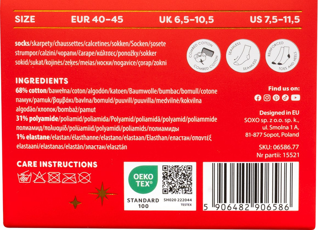In einer Packung findest du drei Paar bunte Socken mit weihnachtlichen Motiven. Sie sind nicht nur lustig, sondern auch unglaublich bequem. Sie passen zu jedem Outfit und fügen der Garderobe des glücklichen Empfängers einen modischen Akzent hinzu.