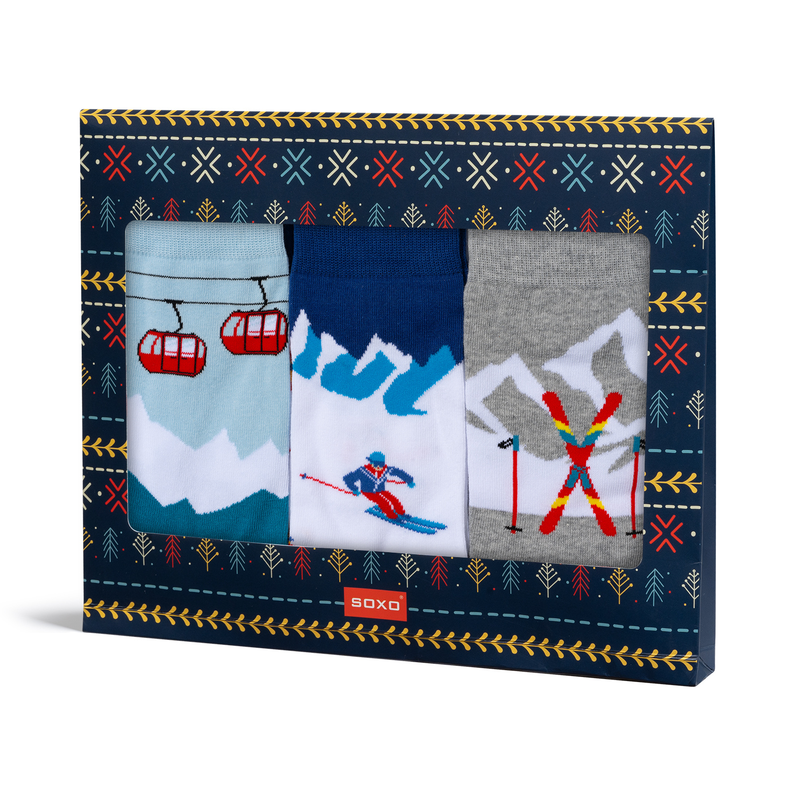 3 Paare von lustige Socken mit Wintersportarten-Motiv in einzigartiger Verpackung | Herrensocken | SOXO