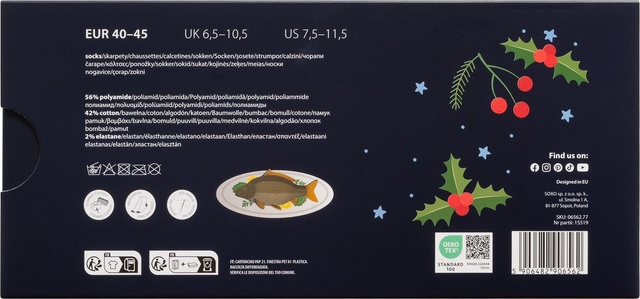 - Die Socken haben die Größe 40–45, sodass sie an die Füße der meisten Männer angepasst werden können.