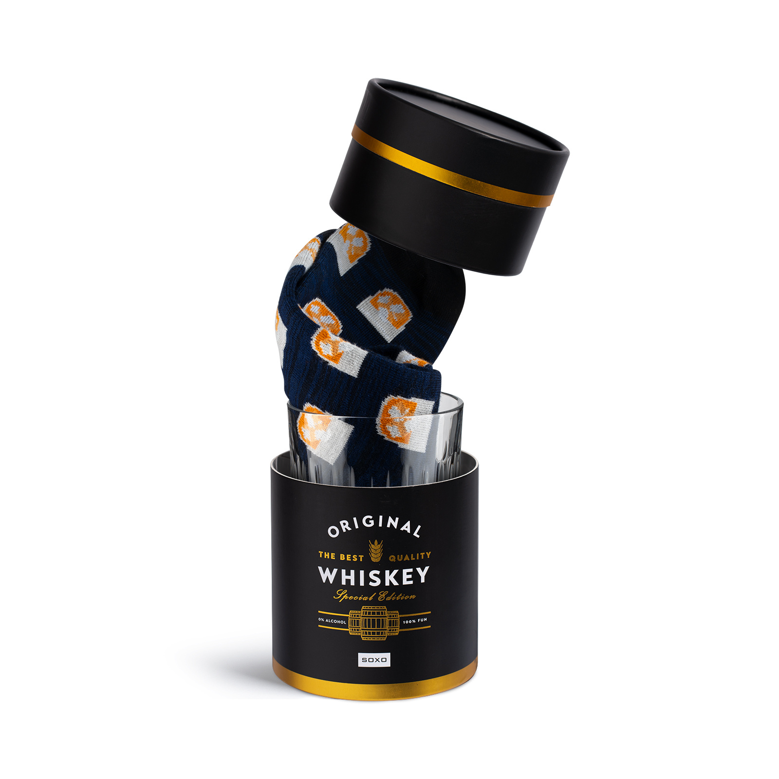 - Die originellen Herrensocken SOXO Whiskey im Glas sind ein stilvolles und lustiges Accessoire für jeden Mann mit Humor und Stil. Auf ungewöhnliche Weise verpackt – in einem eleganten Whiskey-Glas – sind sie eine perfekte Geschenkidee.