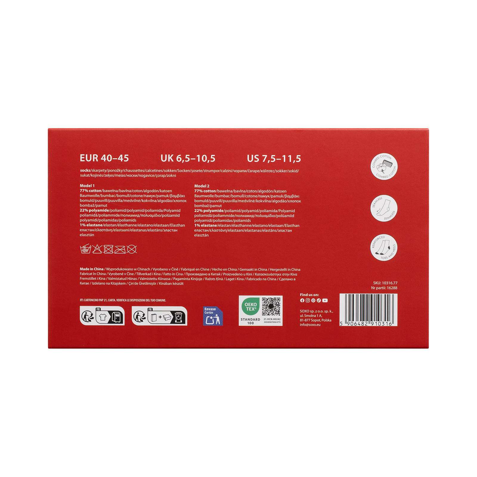 Hergestellt aus hochwertigen Materialien bieten die SOXO Socken nicht nur einen modischen Look, sondern auch den ganzen Tag über Komfort.
