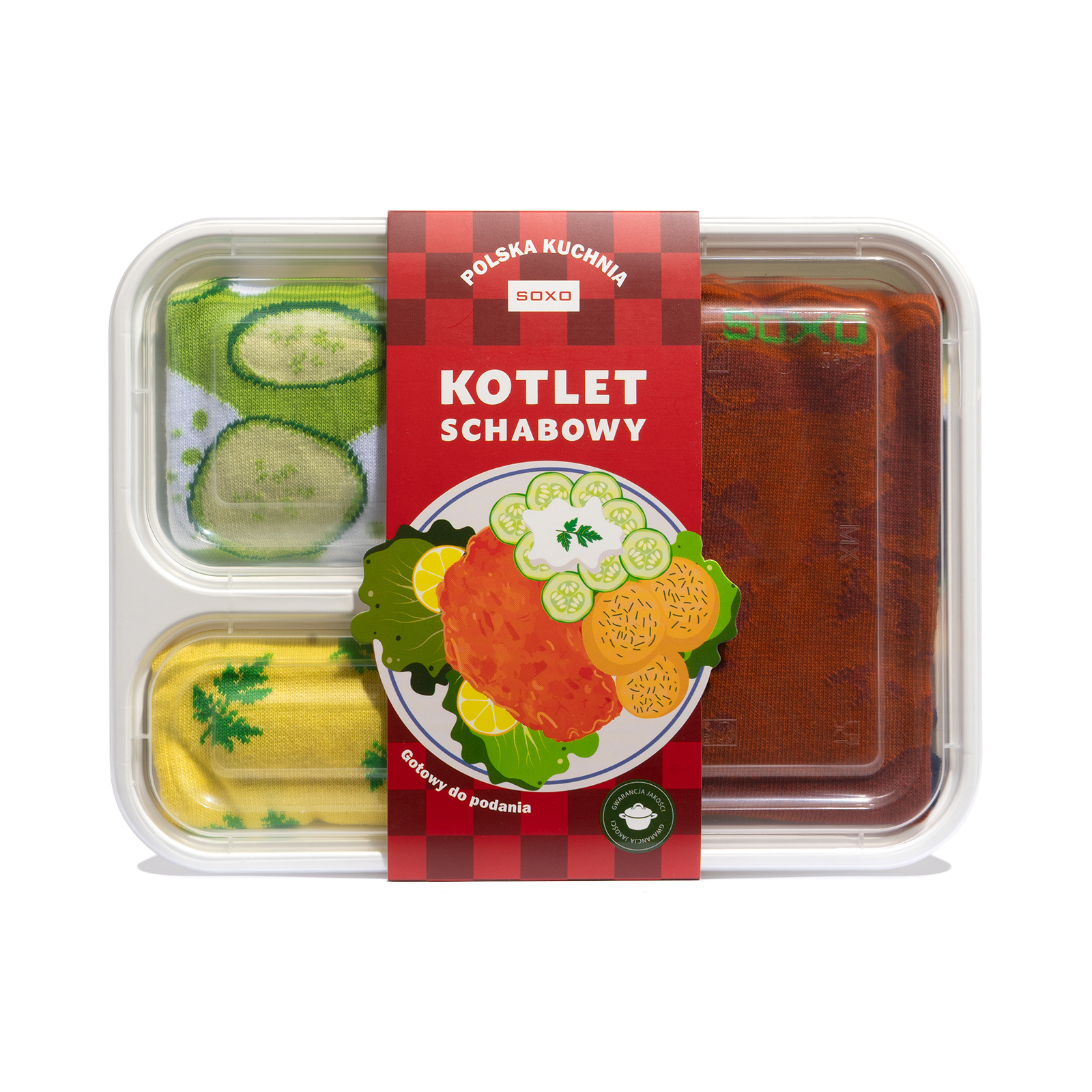 Bringen Sie Freude, Komfort und eine Prise Humor: Wählen Sie das Socken-Set von SOXO mit Schweinekotelett- und Gurkensalat-Motiven!