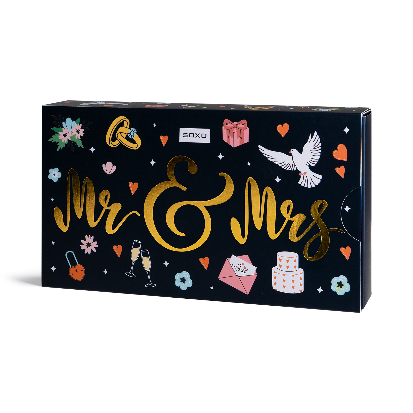 Fröhliche Socken für sie und ihn verpackt in einer eleganten Schachtel sind das perfekte Hochzeitsgeschenk für ein junges Paar. Von nun an können sie jeden Tag gemeinsam mit einem bequemen, warmen und vertrauten Schritt beginnen. Das weiche, zarte Material sorgt für Komfort und Bewegungsfreiheit für sie und ihn. Unsere Socken sind nicht nur ein praktisches Accessoire, sondern auch ein Symbol für ein gemeinsames Leben und freudige Alltagserlebnisse.