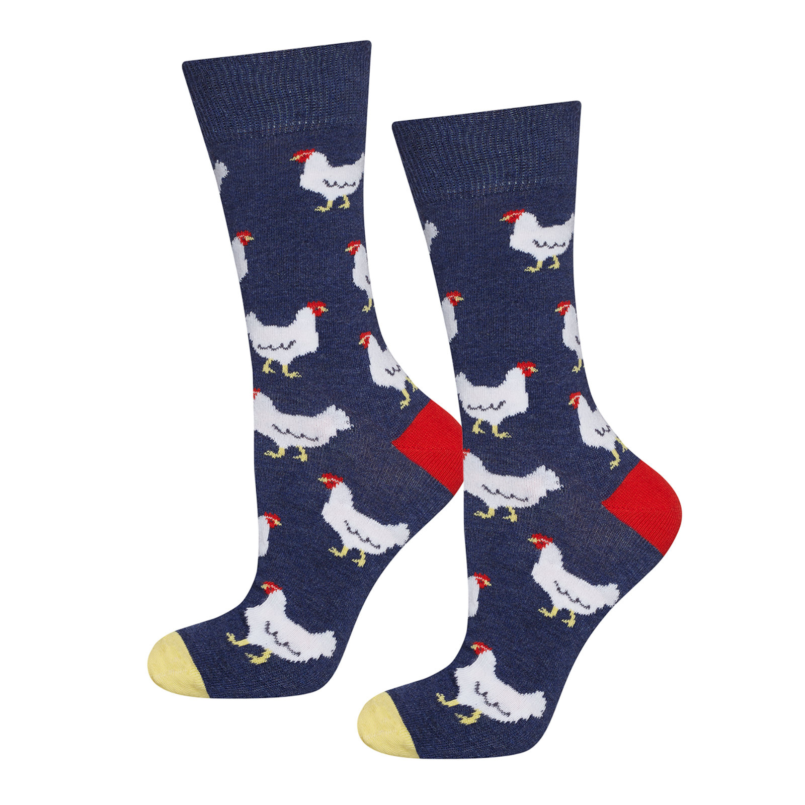 Kury to wszystkim dobrze znane zwierzaki. W Soxo nie brakuje nam szalonych pomysłów na nowe wzory! Chcąc was zaskoczyć jeszcze bardziej stworzyliśmy wesołe skarpetki z motywem kury. Będą one świetnym dodatkiem do nowoczesnej stylizacji dla osób lubiących wyróżniać się z tłumu oraz mających dystans do siebie. Życie może być pełne kolorów z skarpetkami w kury.