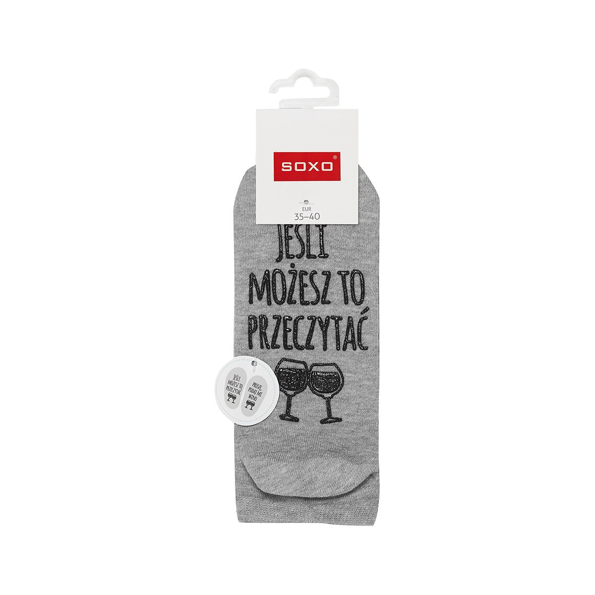 - Stylowe skarpetki SOXO z napisami wykonane są z miękkiej w dotyku i rozciągliwej dzianiny bawełnianej. Są modne, wygodne i komfortowe w noszeniu. SOXO to idealne połączenie przyjemności z funkcjonalnością, które pokochasz od pierwszego założenia!