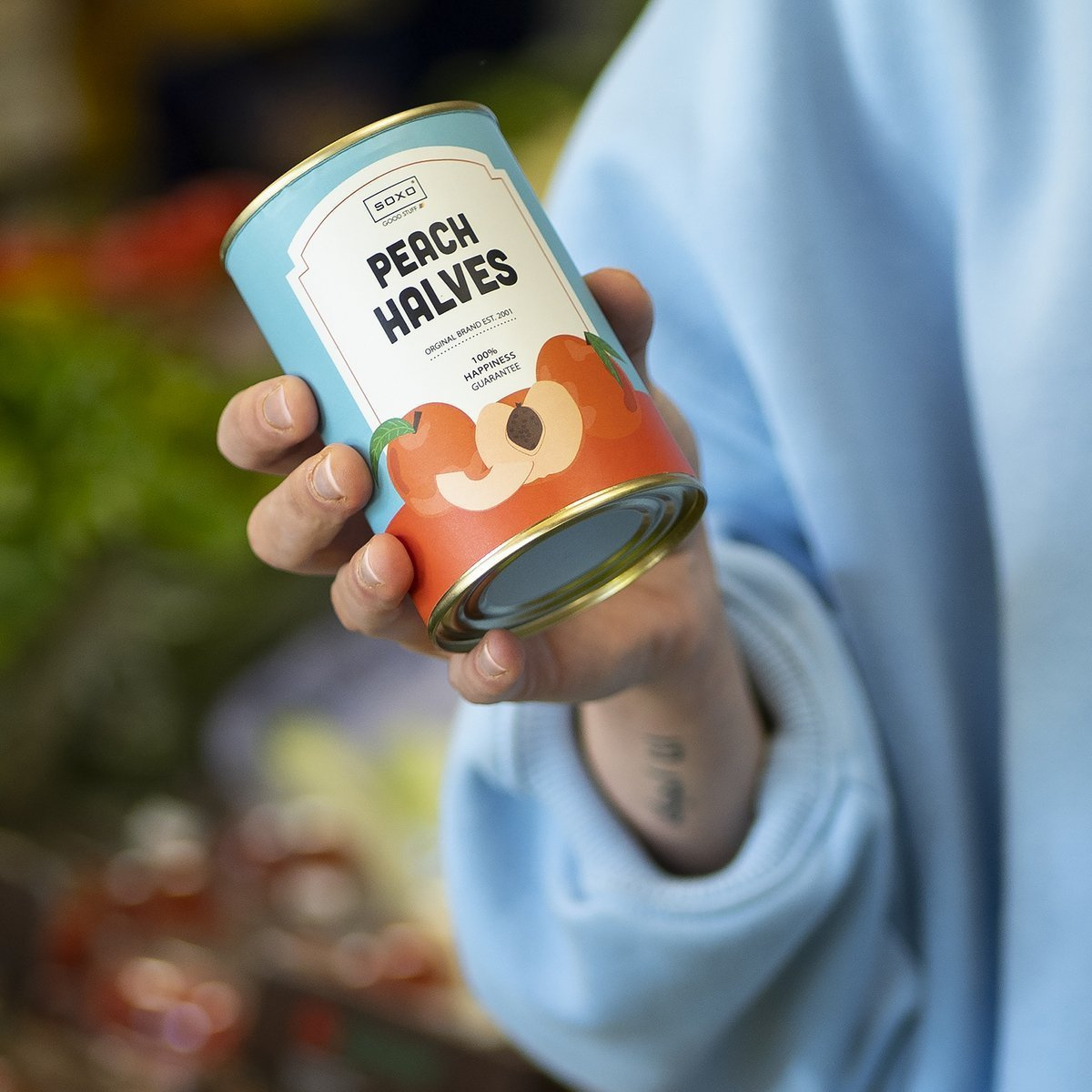- Puszka brzoskwiń na prezent? To nie pomyłka! Dorodne dary natury pysznią się na wyjątkowych skarpetkach zamkniętych w owocowej puszce. Taki apetyczny dodatek osłodzi każdą stylizację i sprawi, że nabierzesz apetytu na życie!