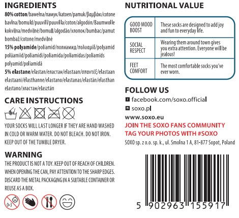 • Kolorowe skarpetki Soxo zwracają na siebie uwagę i nadają się nie tylko na prezent, a przede wszystkim są do noszenia!