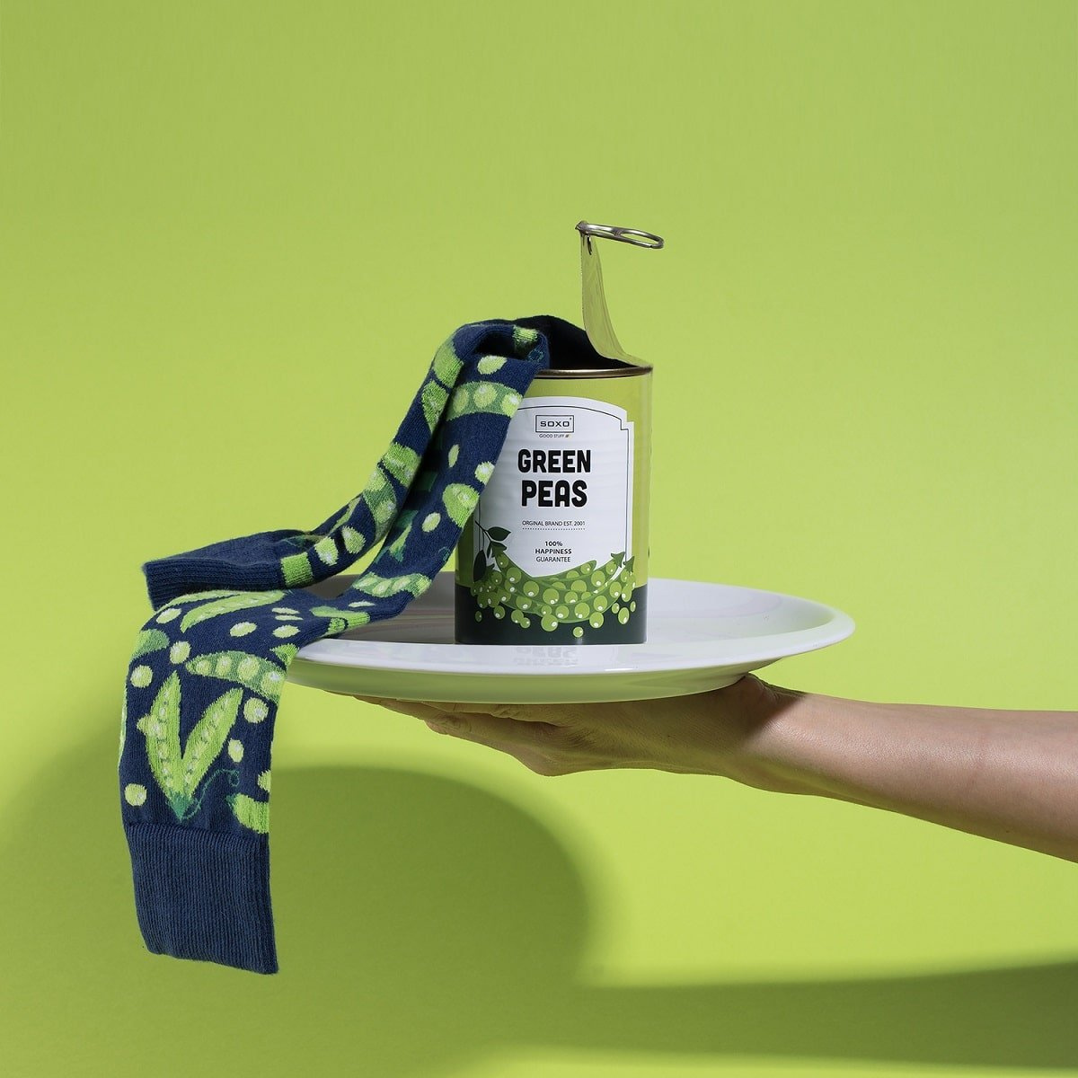 Jaka jest Twoje ulubiona konserwa? Pyszna, słodziutka kukurydza, a może zielony, soczysty groszek w puszce? Bez względu na to jakie warzywo uwielbiasz wybór skarpetek z motywem zielonego groszku będzie dużym zaskoczeniem.