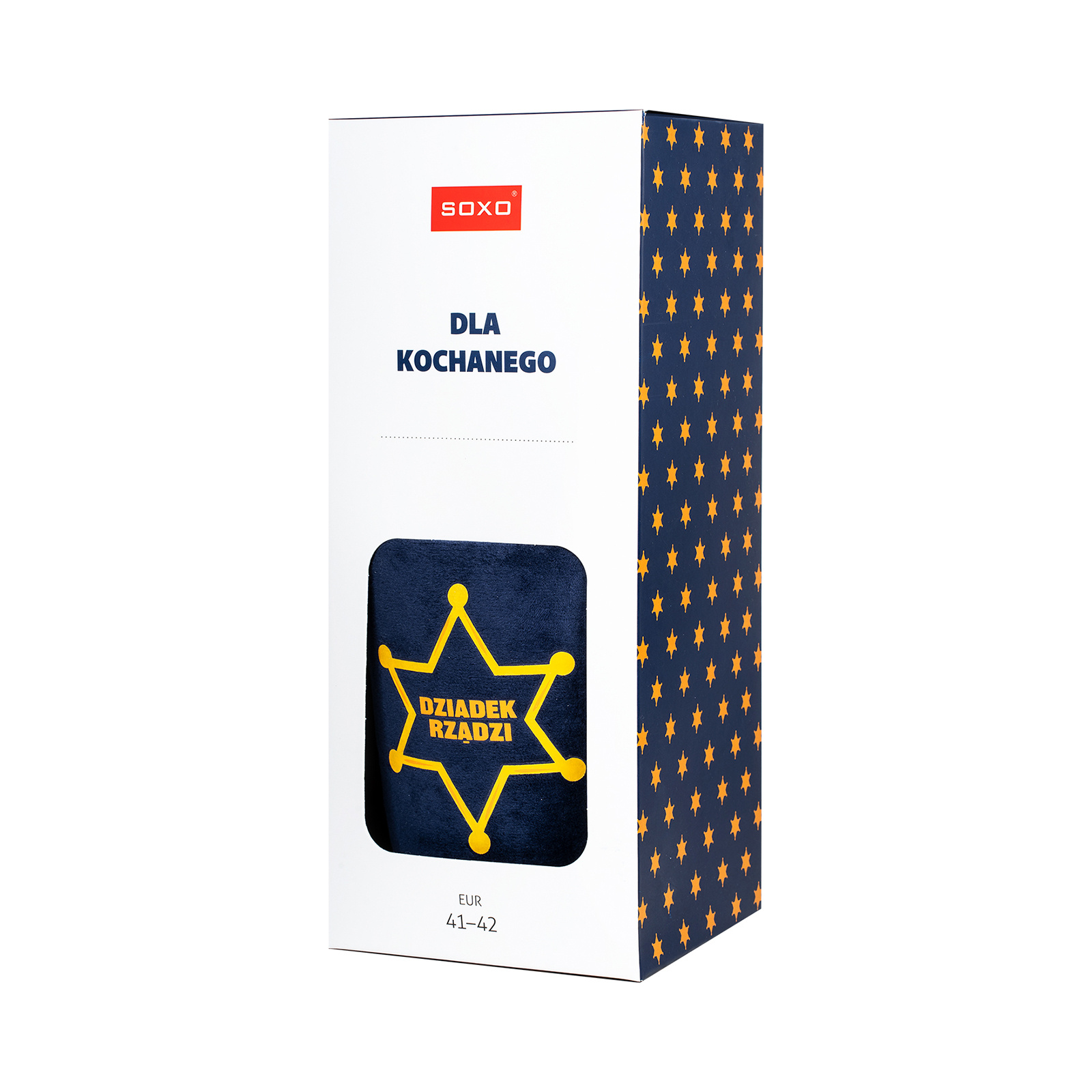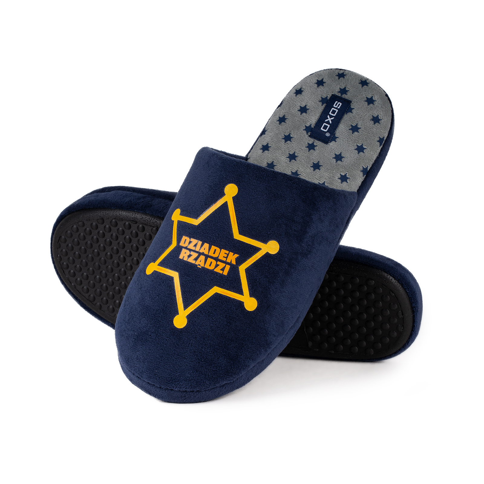 - Modne Kapcie Soxo w pudełku prezentowym z pewnością ucieszą każdego dziadka lubiącego nosić wygodne kapcie w ciekawe wzory.