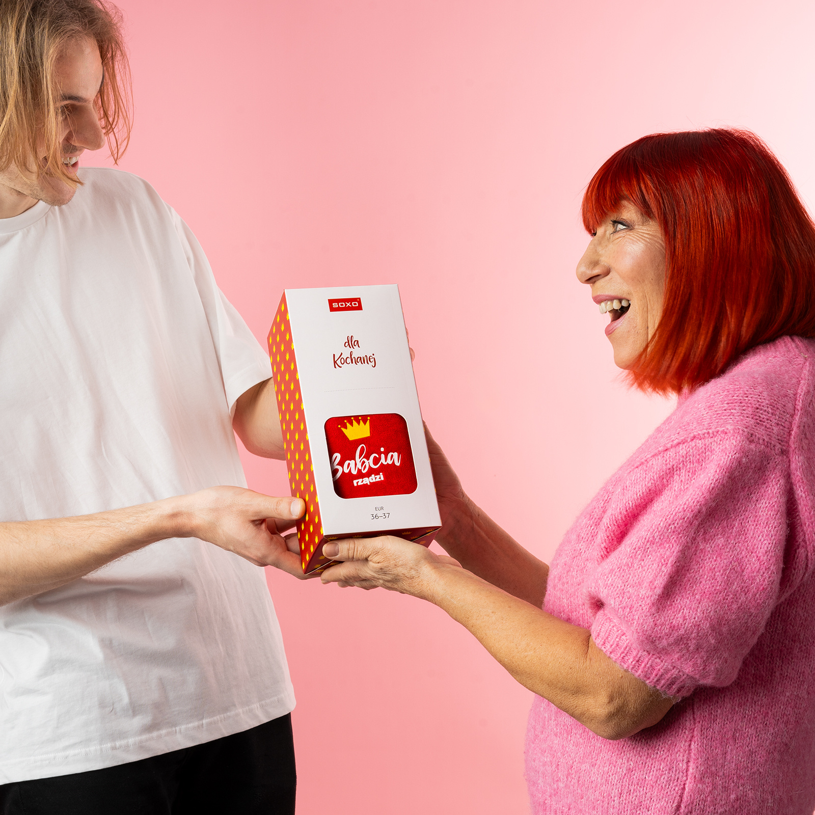 - Modne Kapcie Soxo w pudełku prezentowym z pewnością ucieszą wszystkie Babcie lubiące nosić wygodne kapcie w ciekawe wzory.