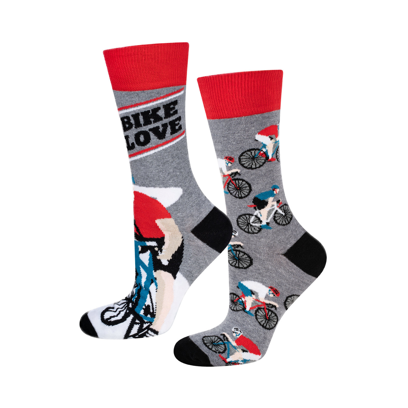 Zabawne rowerowe skarpetki “nie do pary” poprawią Ci humor i podkreślą Twój styl. Zapomnij o nudzie i skarpetkowych konwenansach. Kolarstwo to twoja pasja? Czas obwieścić to całemu światu. Symetria jest estetyką głupców, a każda z Twoich skarpetek to osobny rozdział tej samej historii.