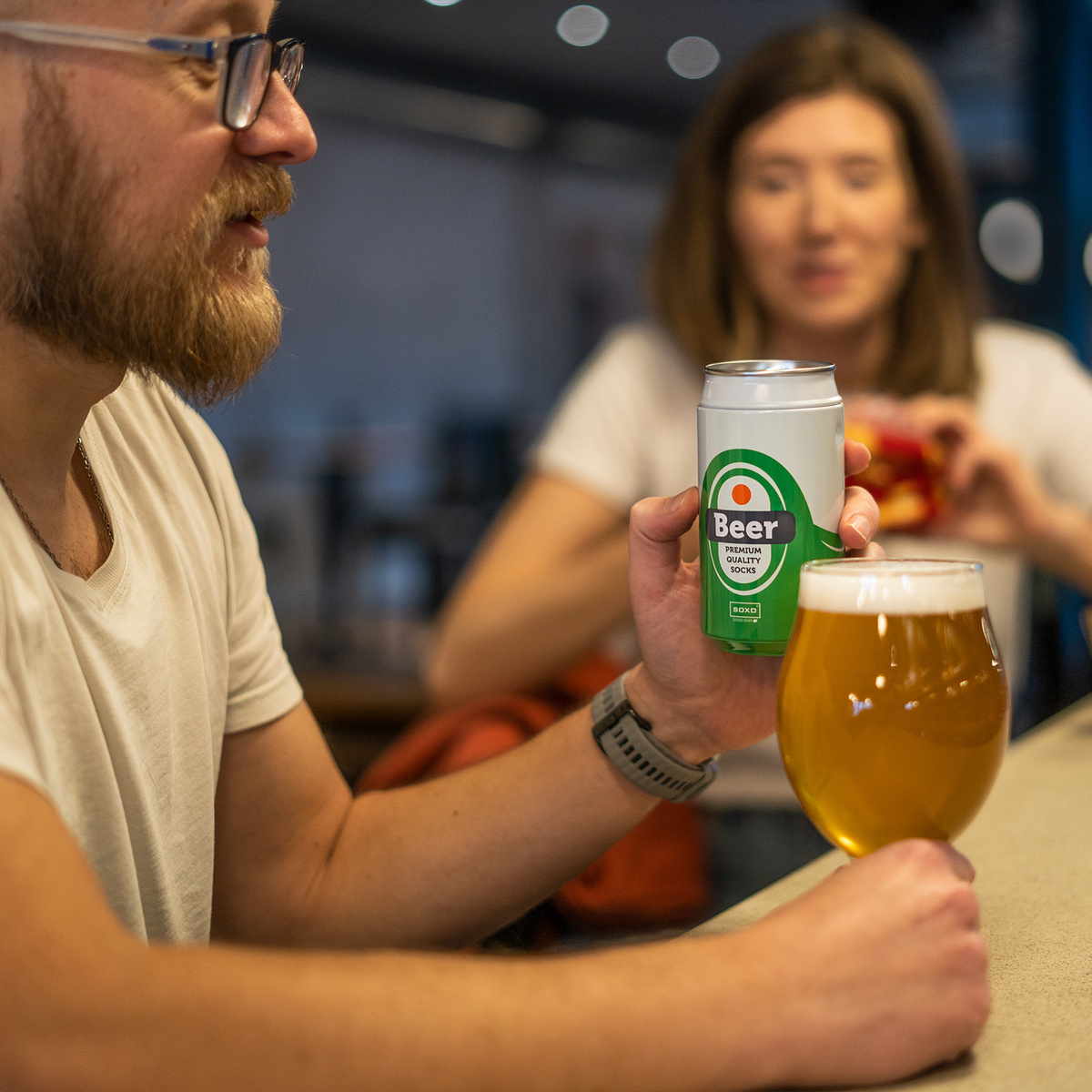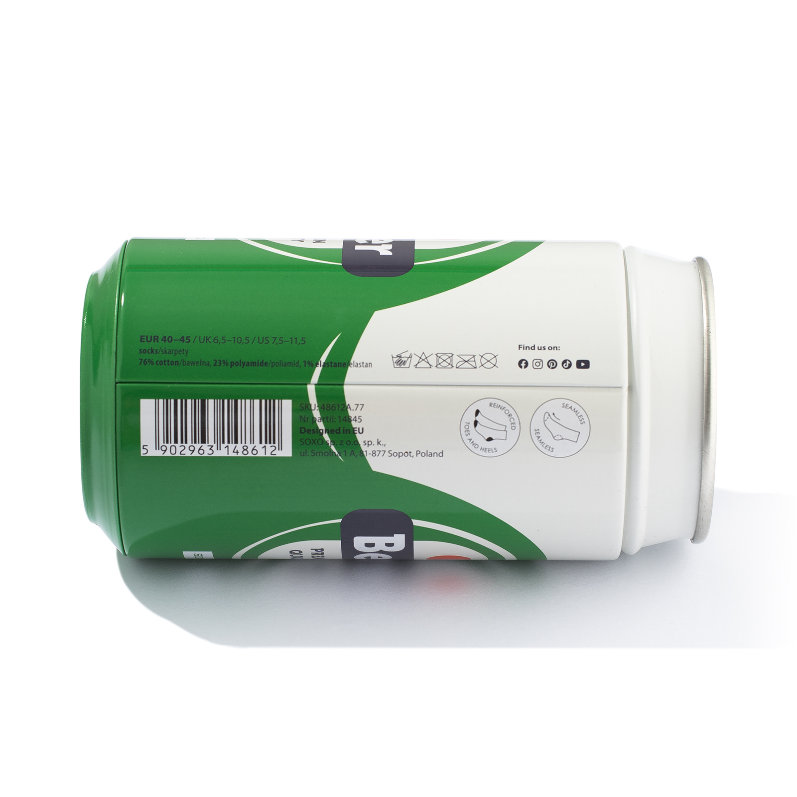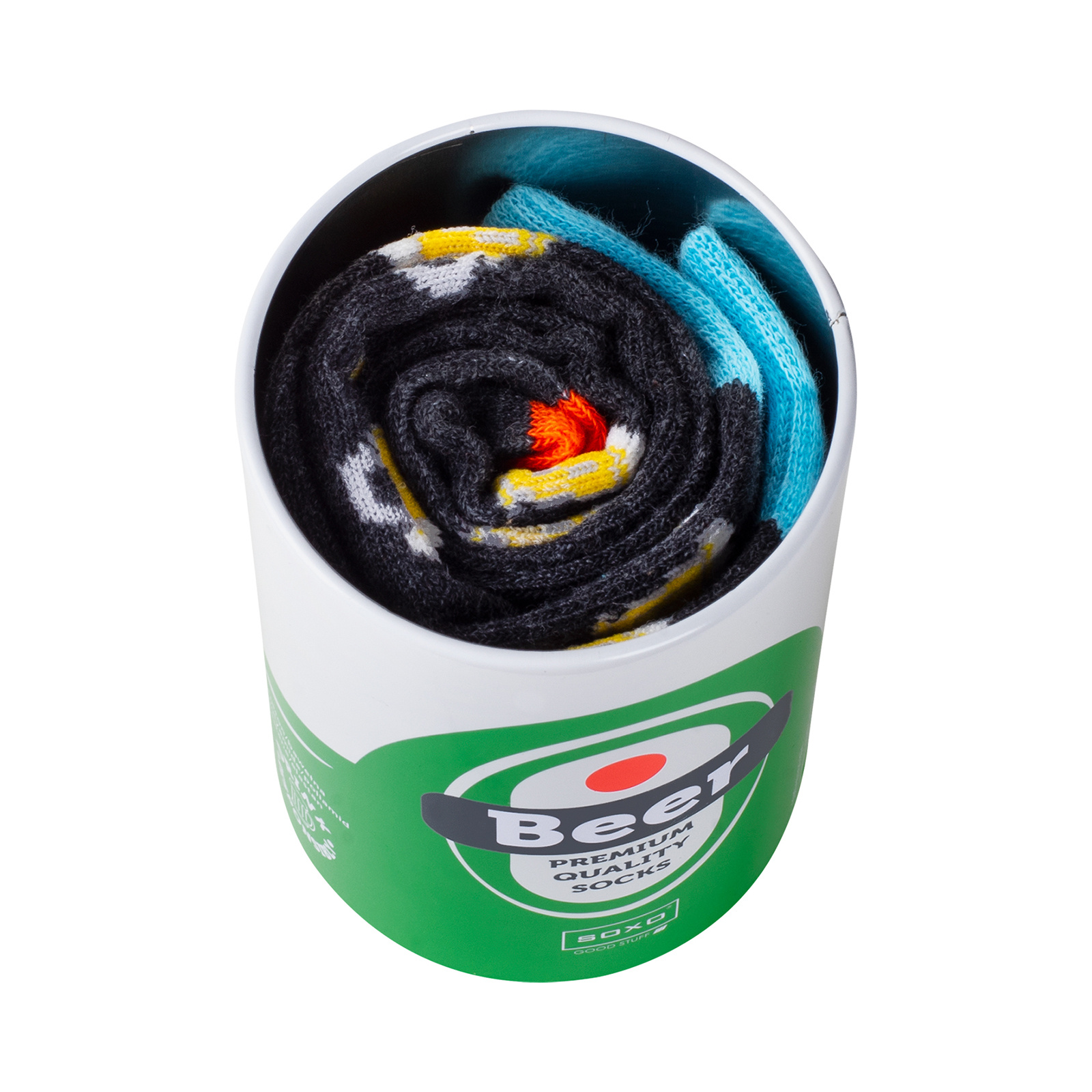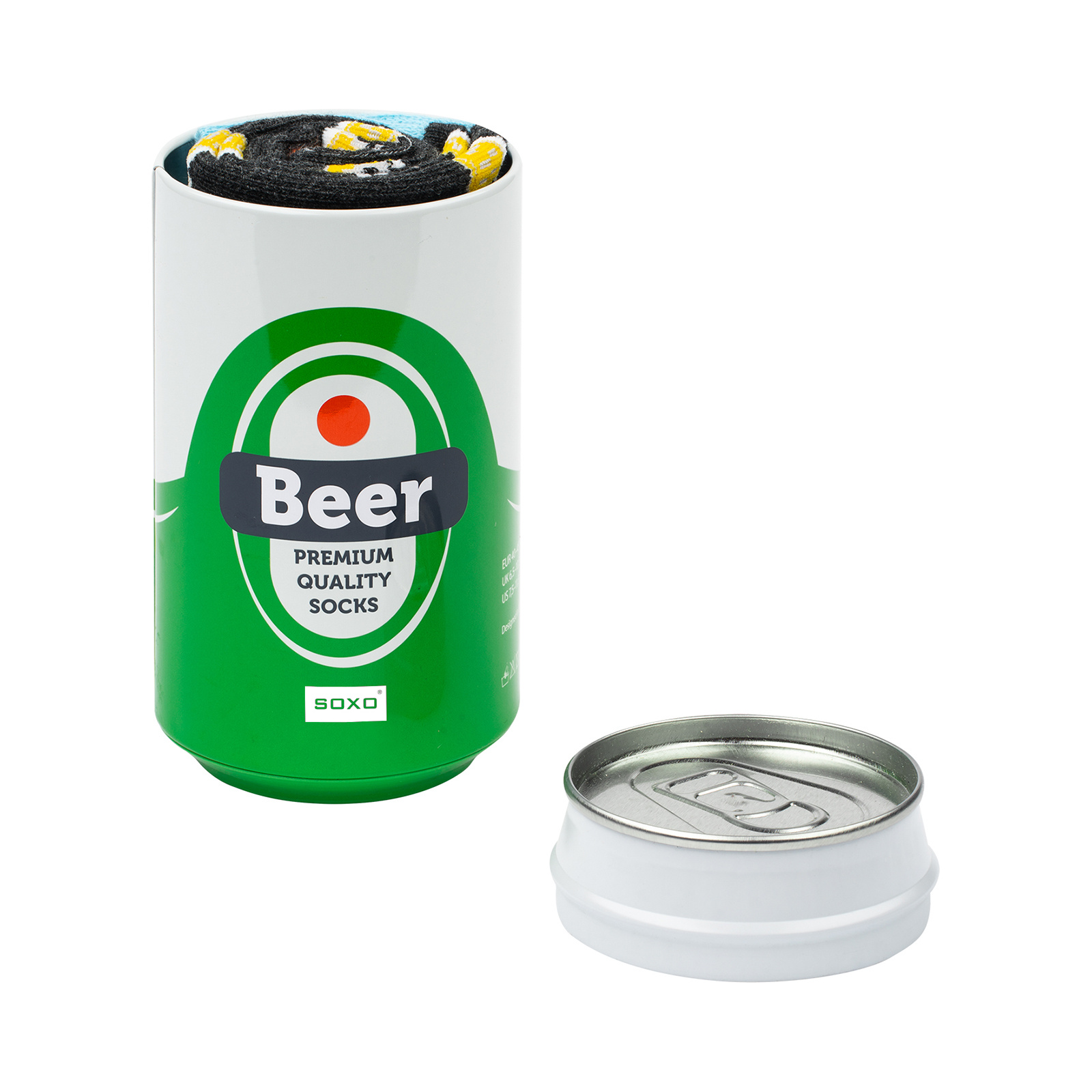 - To co dodatkowo wyróżnia skarpetki, to zaskakujące opakowanie! Są one umieszczone w puszce, która do złudzenia wygląda jak ta od prawdziwego piwa! To właśnie dzięki niej skarpetki są idealnym pomysłem na prezent dla mężczyzny. Będzie zaskoczony, gdy przyjrzy się puszce z bliska i postanowi ją otworzyć! W środku znajdzie parę kolorowych, zabawnych skarpetek, które dodadzą energii i luzu każdej codziennej stylizacji.