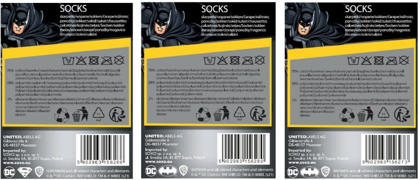 - Produkt wykonano z najwyższej jakości bawełny, dzięki czemu stopy nie pocą się i mogą oddychać nawet podczas najbardziej intensywnych walk z Jokerem.