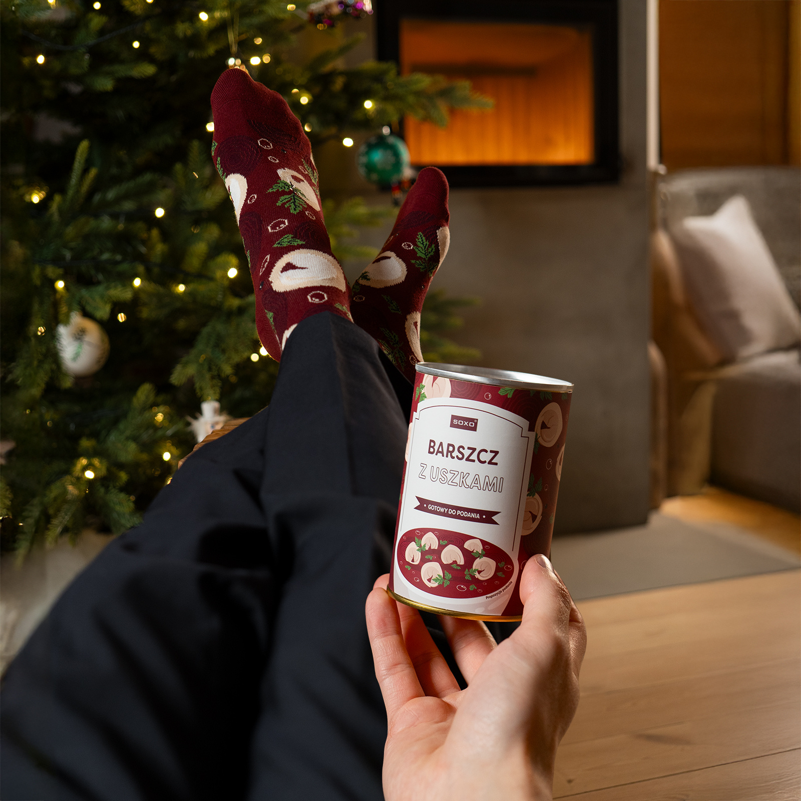 - Apetyczna puszka pełna pysznego barszczu z uszkami… na prezent?! To nie pomyłka! Otwórz pojemnik do złudzenia przypominający konserwę i rozkoszuj się wyjątkową… parą skarpetek. Uśmiech na ustach osoby obdarowanej jest gwarantowany!