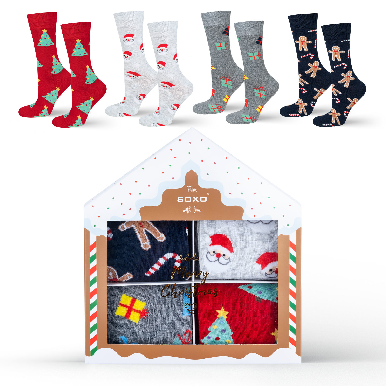 - Szukasz prezentu dla mężczyzny na Święta, który będzie gotowy do podarowania? Który pięknie się prezentuje i przyda na co dzień? Wybierz zestaw 4 par skarpetek w świąteczne wzory, zapakowany w urocze pudełko w kształcie domku z piernika!