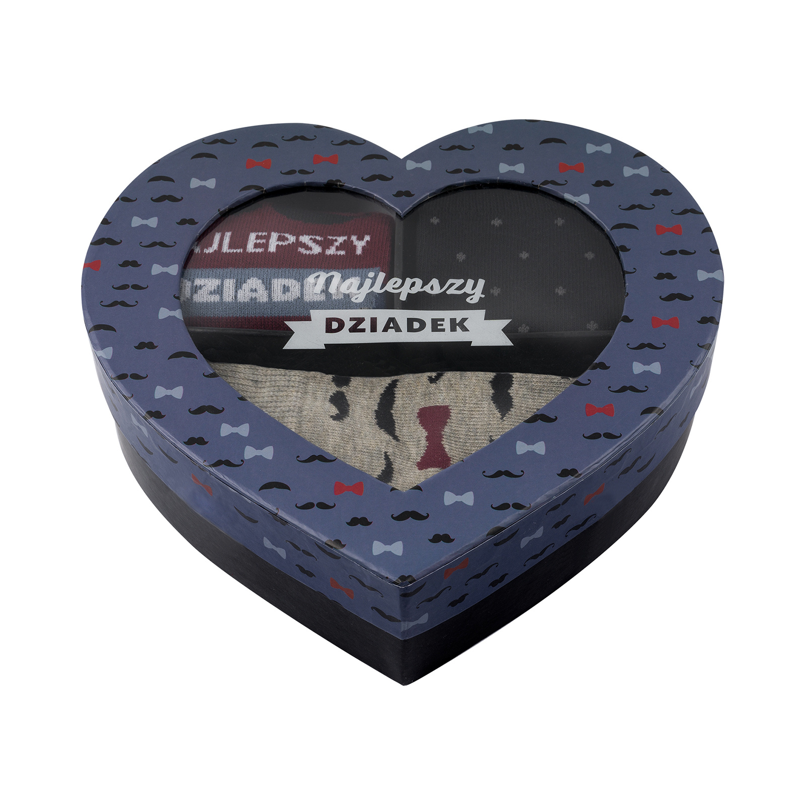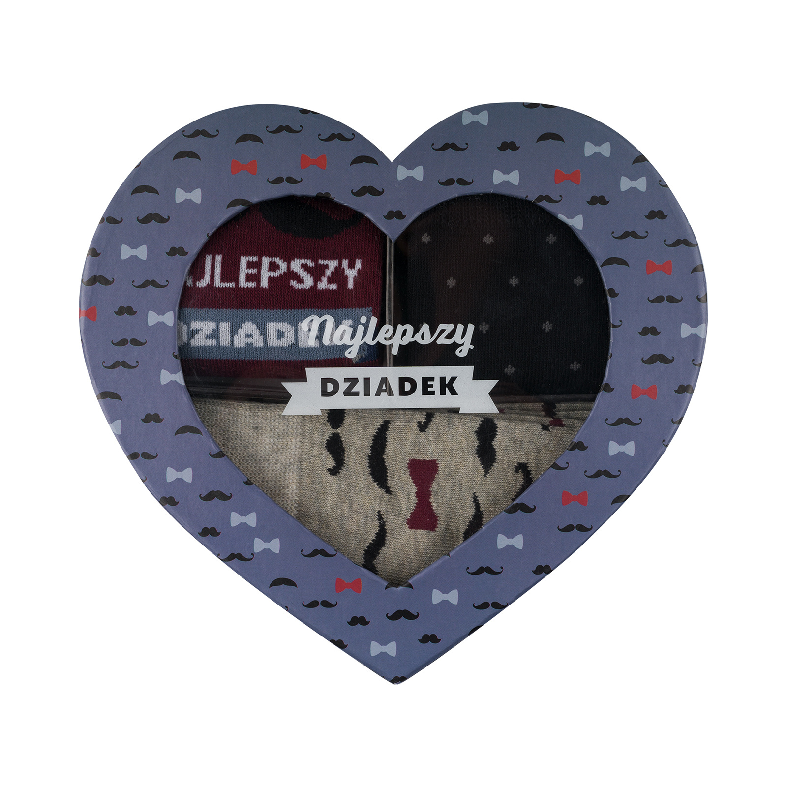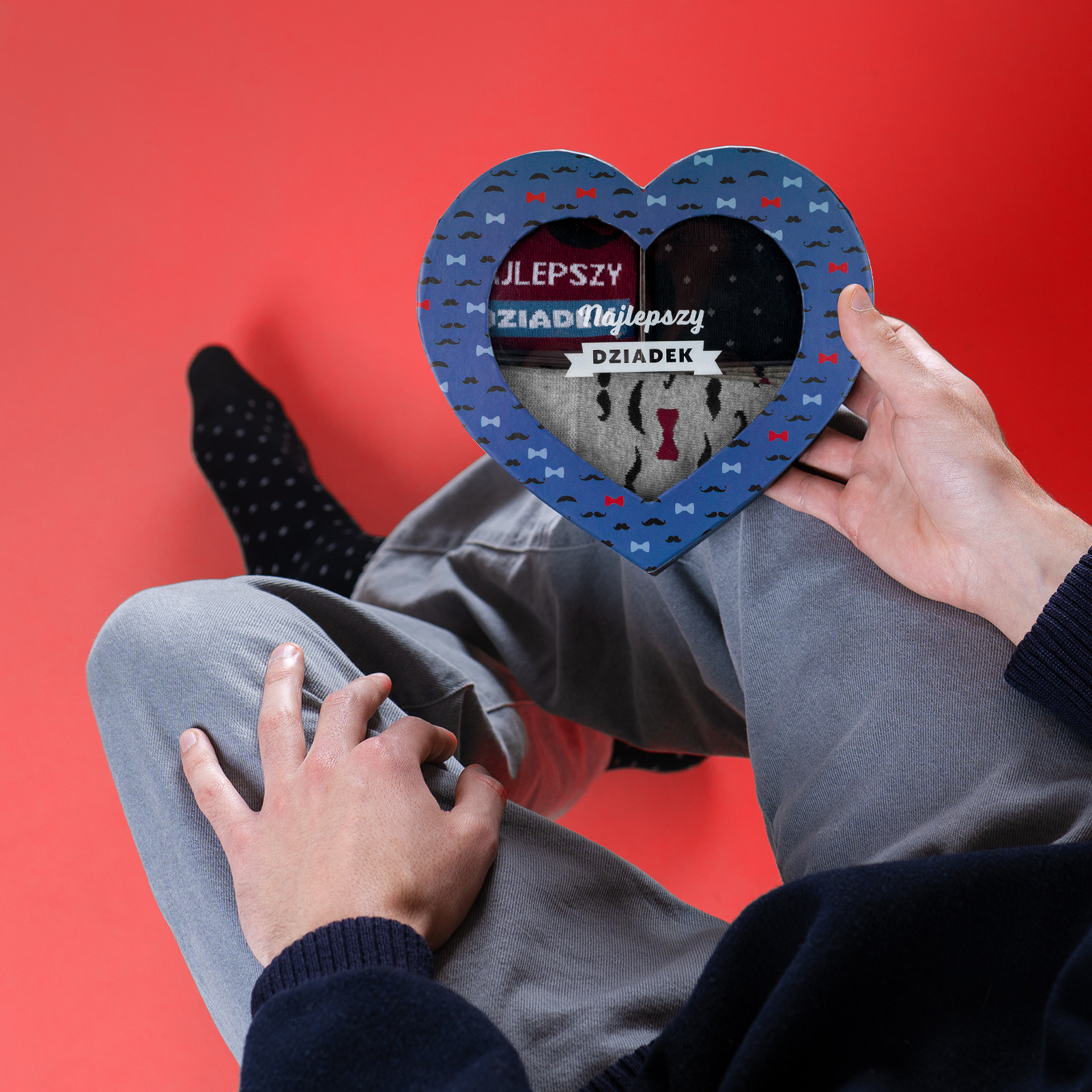 - Zabawne skarpetki dla dziadka to elegancja, styl i estetyka. Dolna część garderoby zapakowana w wyjątkowe opakowanie w kształcie serduszka to idealny pomysł na prezent z okazji Dnia Dziadka, Urodziny, Mikołajki czy Święta.