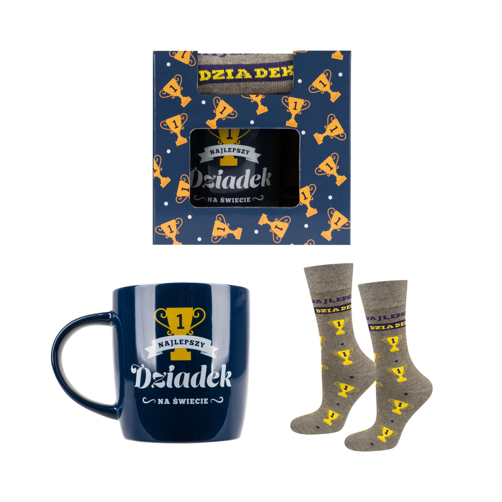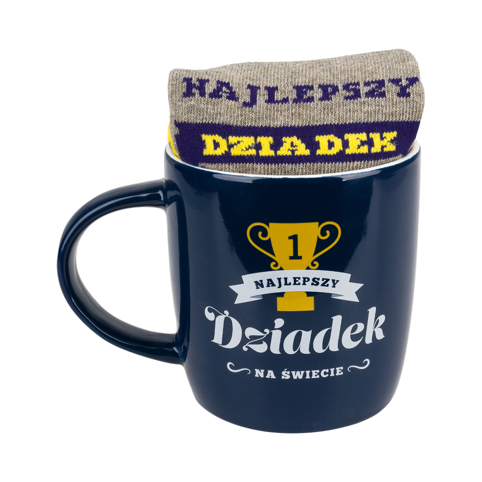 - Zestaw kubek i skarpetki to idealny pomysł na prezent dla ukochanego dziadka. Wygodne skarpetki będą modnym dodatkiem do jego stylizacji, a kubek sprawdzi się zarówno do ciepłego jak i zimnego napoju!