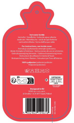 - Termofor jest duży: 1.8 l, dzięki czemu woda w nim szybko nie wystygnie i może objąć nawet większą część ciała.