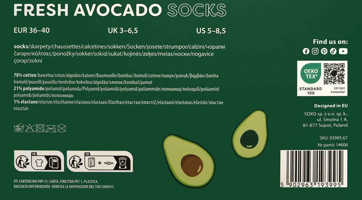 - Skarpetki z motywem awokado są wykonane z wysokiej jakości materiału, który zapewnia stopom niezwykły komfort
