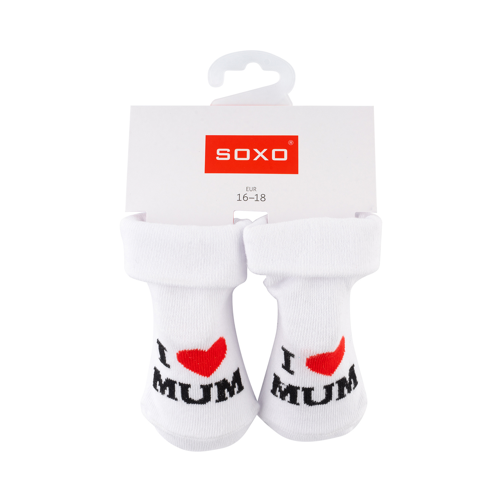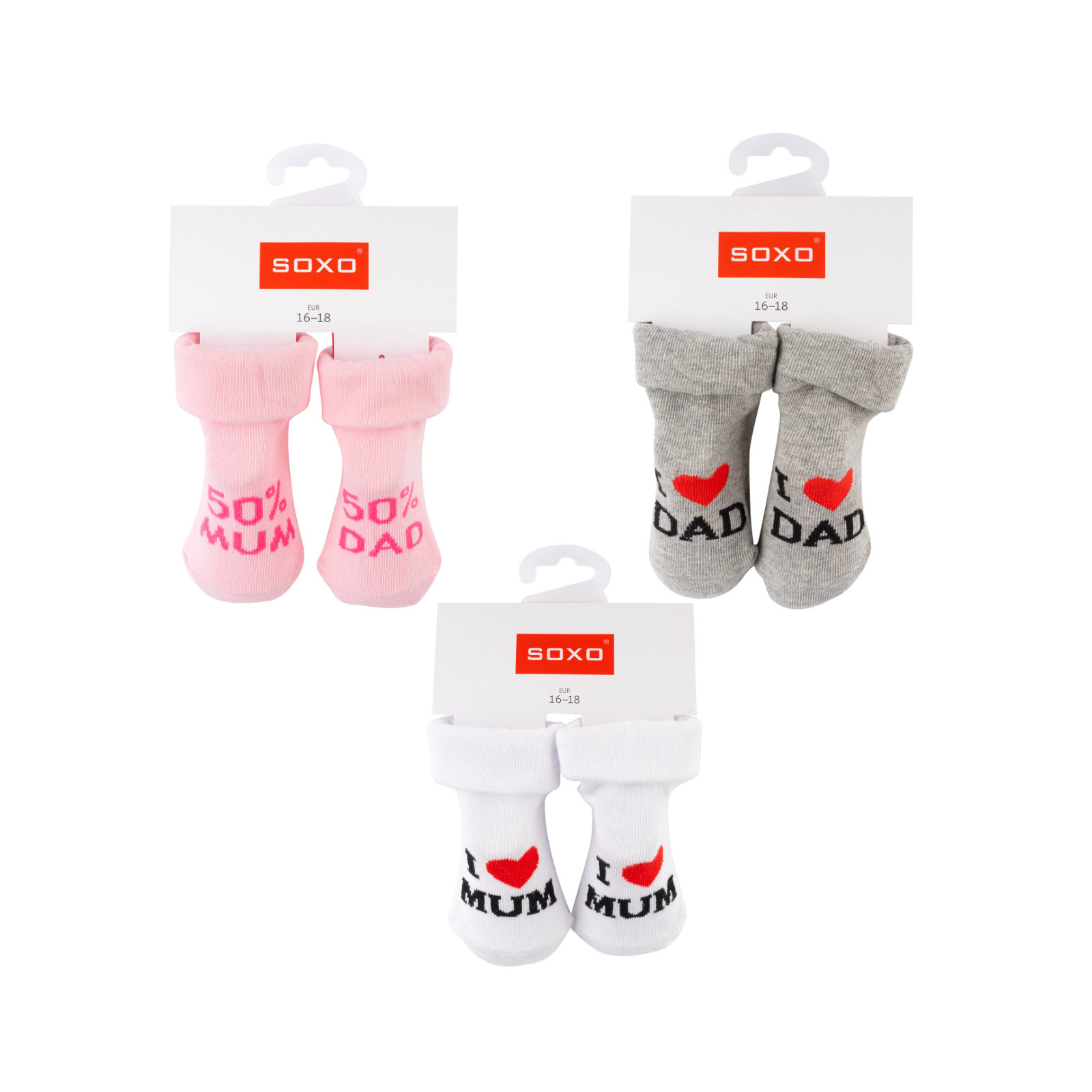 - Wyjątkowe skarpetki niemowlęce SOXO z napisami rozpieszczą stopy malucha swoim delikatnym materiałem. Klasyczny krój sprawdzi się do każdej stylizacji szkraba. U nas moda i wygoda idą w parze! Skarpetki są łatwe w zakładaniu i dobrze przylegają do ciała.