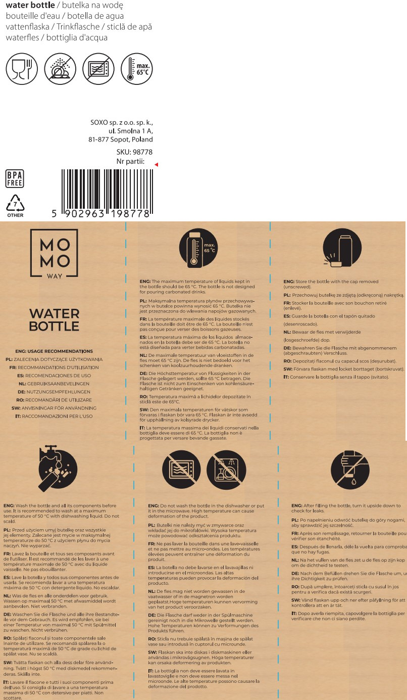 butelki nie należy myć w zmywarce oraz wkładać jej do mikrofalówki. Wysoka temperatura może powodować odkształcenia produktu
