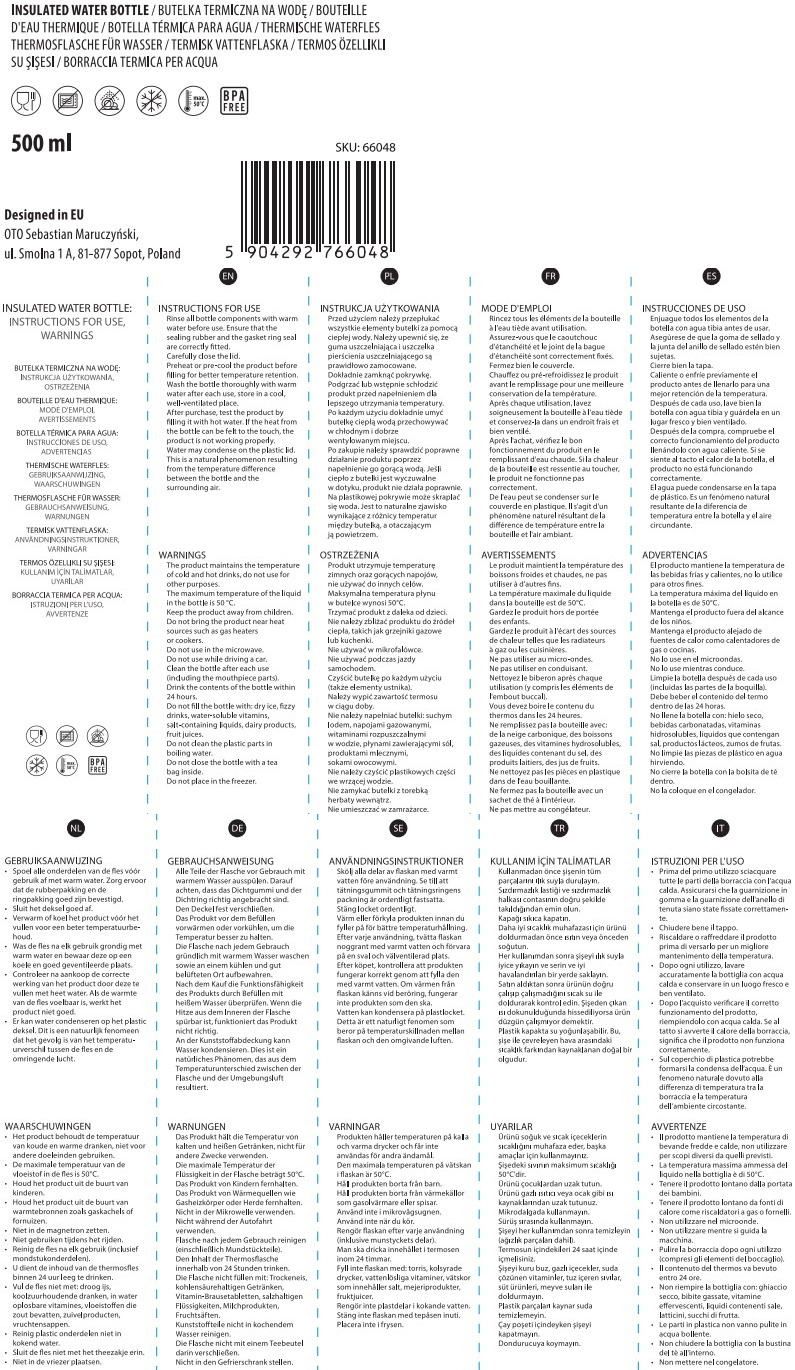 - Produkt utrzymuje temperaturę zimnych oraz gorących napojów, nie używać do innych celów maksymalna temperatura płynu w butelce wynosi 50°C.