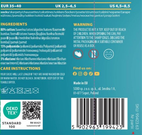 - Modne skarpetki SOXO z pewnością ucieszą wszystkich lubiących nosić kolorowe skarpetki w ciekawe wzory.