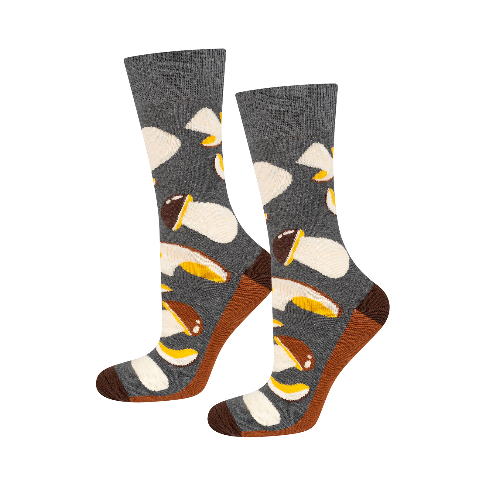 Lubisz wyróżniać się z tłumu? Z nami nuda Ci nie straszna! Wesołe skarpetki z motywem borowików rozweselą każdą kwaśną minę, będą modnym dodatkiem do stylizacji, który nie przejdzie bez echa.
