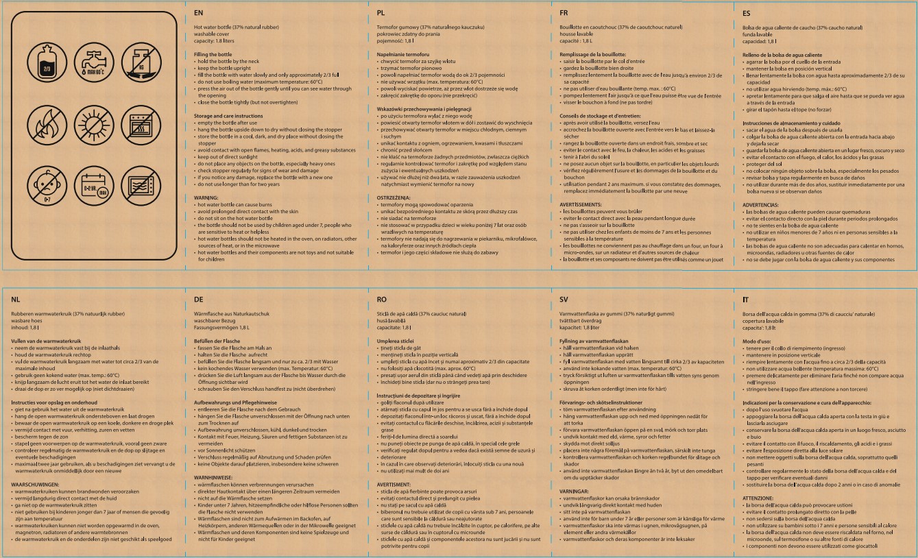 Termofor: wkład: 37% naturalnego kauczuku; pokrowiec 100% poliester
