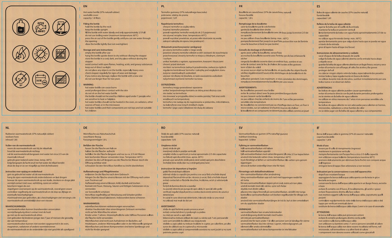 Termofor: wkład: 37% naturalnego kauczuku; pokrowiec 100% poliester