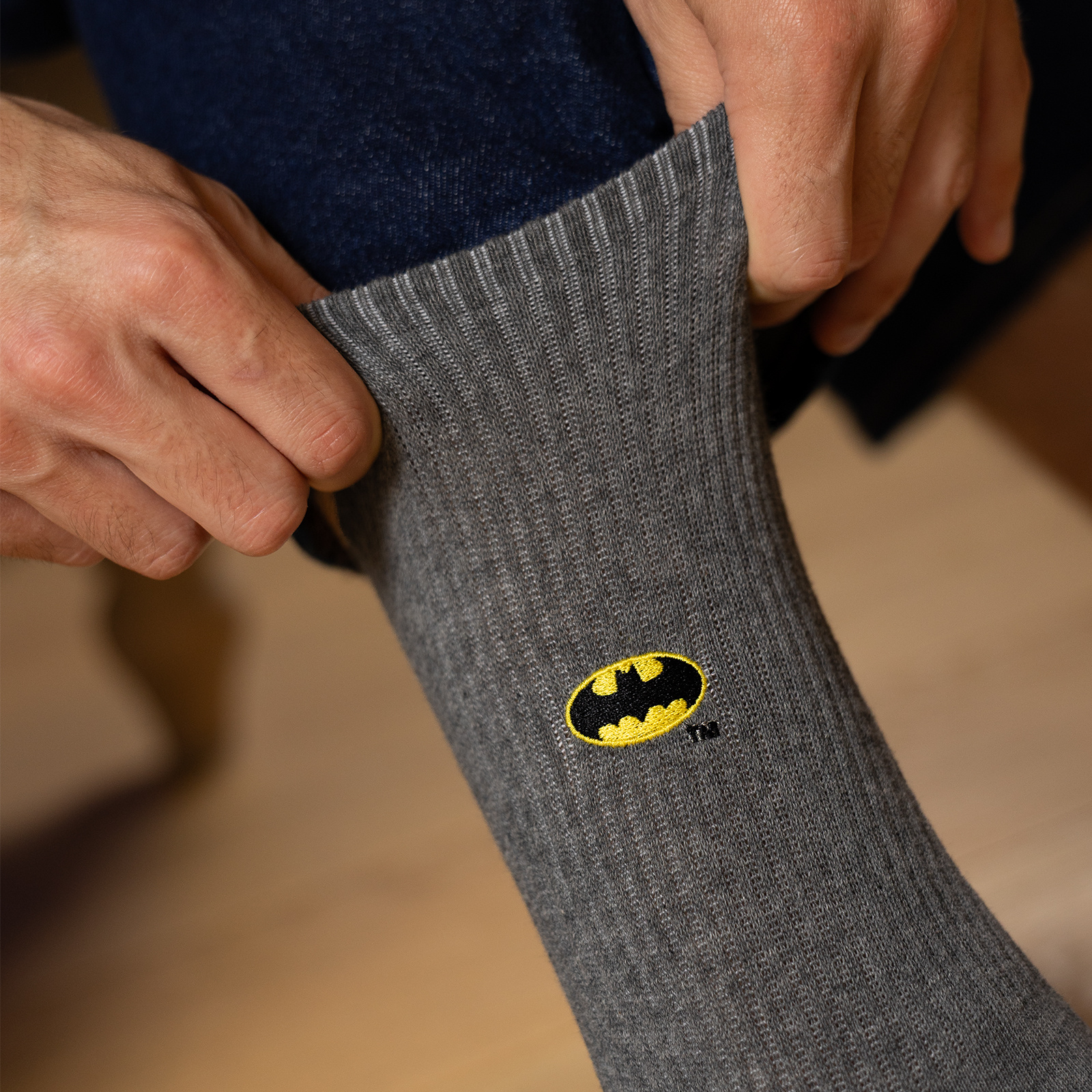 Zestaw Batman to idealna propozycja dla wszystkich fanów Mrocznego rycerza. W komplecie znajdują się praktyczne elementy, które wyglądają elegancko i z pewnością trafią w gust przyszłego właściciela. W zestawie znajdziesz skarpetki utrzymane w mrocznej kolorystyce, magiczny kubek oraz wyjątkowy brelok.