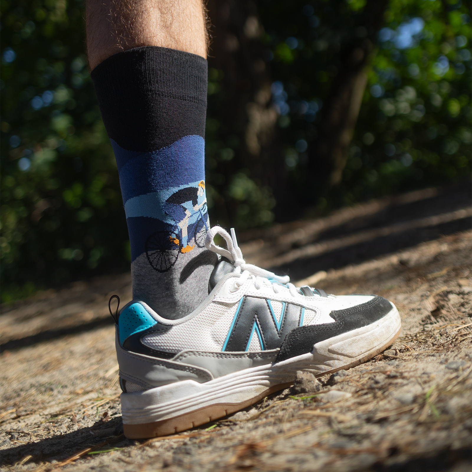 Dlaczego zestaw skarpetek z motywem rowerów są idealne na prezent? Ten zestaw to nie lada gratka dla każdego kolarza czy miłośnika jazdy na rowerze po każdym terenie. Często bywa, że droga rowerowa jest kręta i pełna niespodzianek, i tak też jest z naszymi skarpetkami! Są one nie tylko zaskakująco wygodne, ale również zadbają o Twoje stopy każdego dnia. Zapewniając komfort i bezpieczeństwo. Ten egzemplarz jest iście rozkręcony!