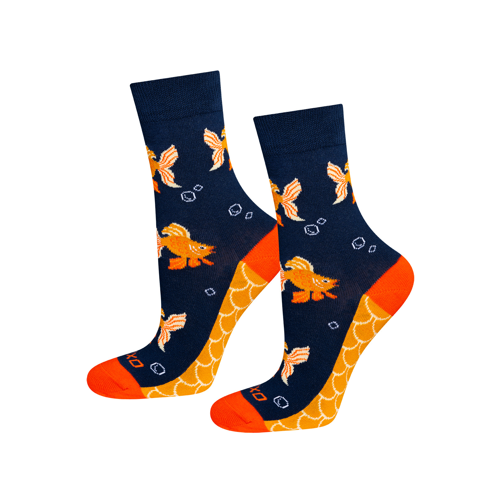 Kolorowe skarpetki złota rybka to nie tylko zwyczajne skarpetki to wyjątkowy upominek, którym sprawisz radość bliskiej ci osobie. Doskonały na różne okazje od urodzin po święta. Ten model jest idealny dla osób które lubią eksperymentować i wyróżniać się z tłumu i cenią sobie nietypowe dodatki w garderobie.