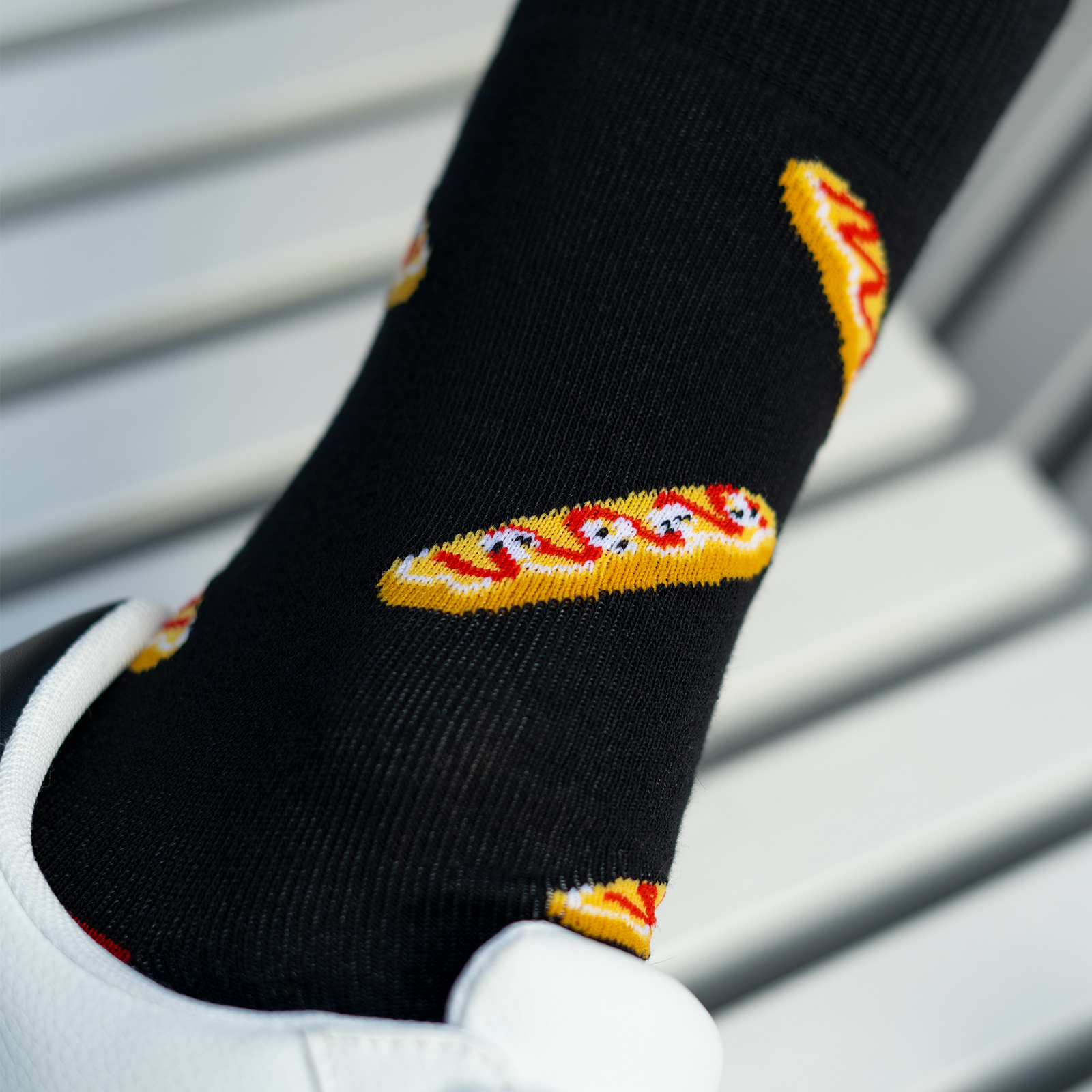 Odkryj wesołe skarpetki z motywem Zapiekanki, które wniosą kolor do Twojej garderoby. Ten model skarpetek to doskonały pomysł na prezent dla mężczyzny ceniącego oryginalne dodatki. Ich unikatowy wzór z apetyczną zapiekanką z pewnością przyciągnie uwagę i wywoła uśmiech. Dodatkowo zapakowane w eleganckie opakowanie możesz podarować na wiele okazji.