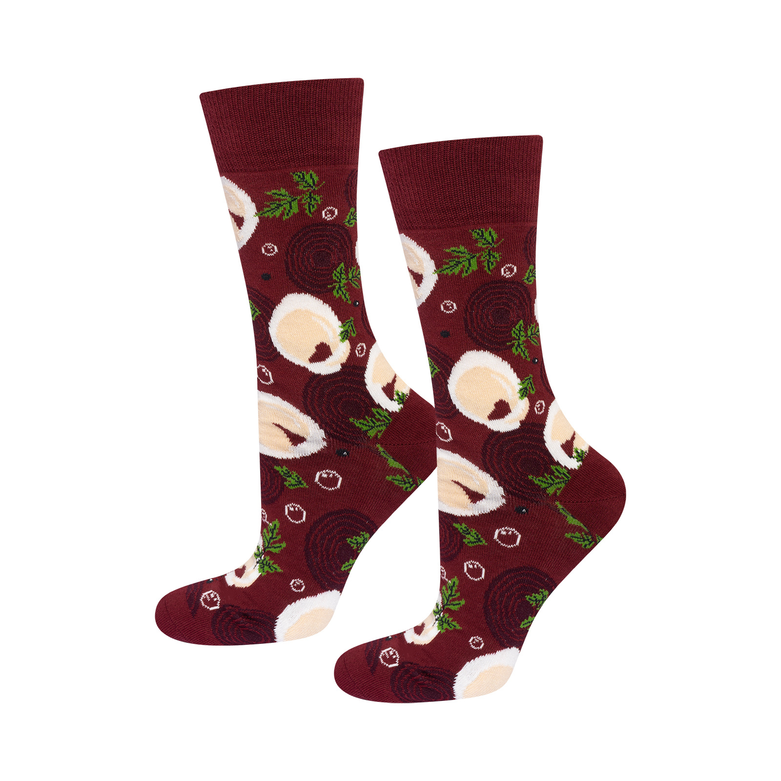 Barszcz to klasyczna zupa przyrządzana z buraków i na wywarze. Zainspirowani tym daniem stworzyliśmy skarpetki z motywem barszczu. To idealny model dla mężczyzny, który ma pozytywne nastawienie do życia. Miksowanie kolorów i zabawnych skarpetek z klasycznym, eleganckim ubiorem nic trudnego! Pomoże w tym dolna część garderoby ze wzorem barszczu.