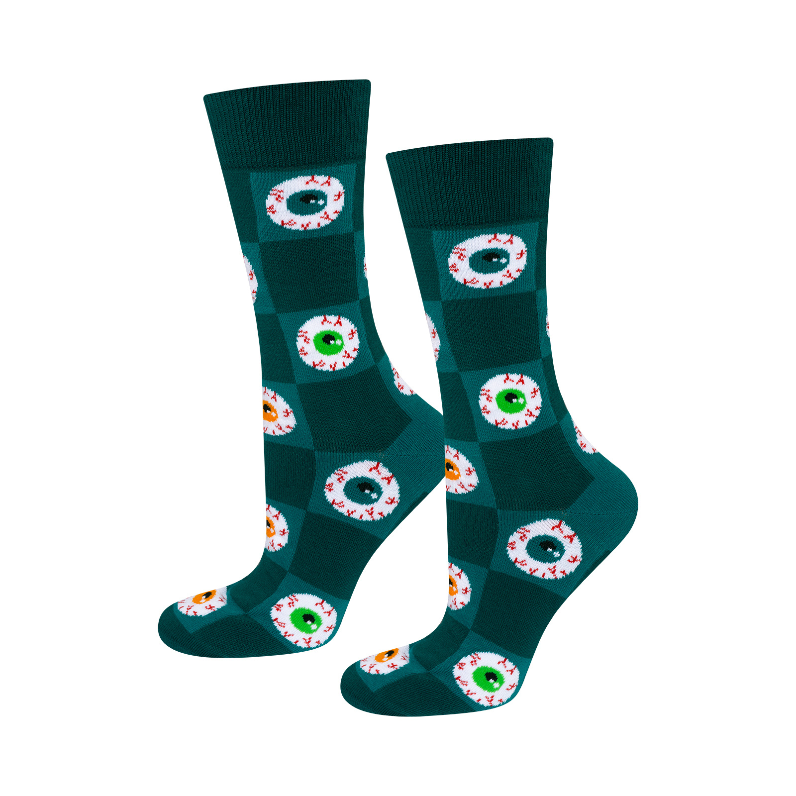 Idealne na wieczorne przyjęcia halloweenowe, domowe seanse filmowe z horrorami, a także na co dzień, dla tych, którzy lubią wyróżniać się z tłumu. Skarpetki z motywem ducha i oczu to styl, komfort i halloweenowy klimat w jednym!