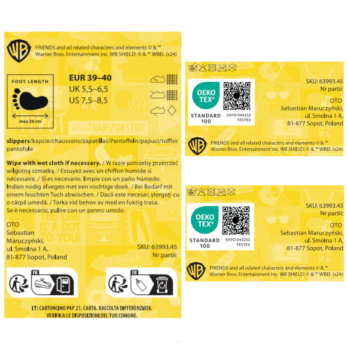 Dbaj o swoje stopy w każdej sytuacji – w domu, pracy czy szkole – i zapewnij im komfort dzięki naszym kapciom i skarpetkom z motywem Friends. Wybierz ten kolorowy i stylowy zestaw i ciesz się swobodą, gdziekolwiek jesteś!