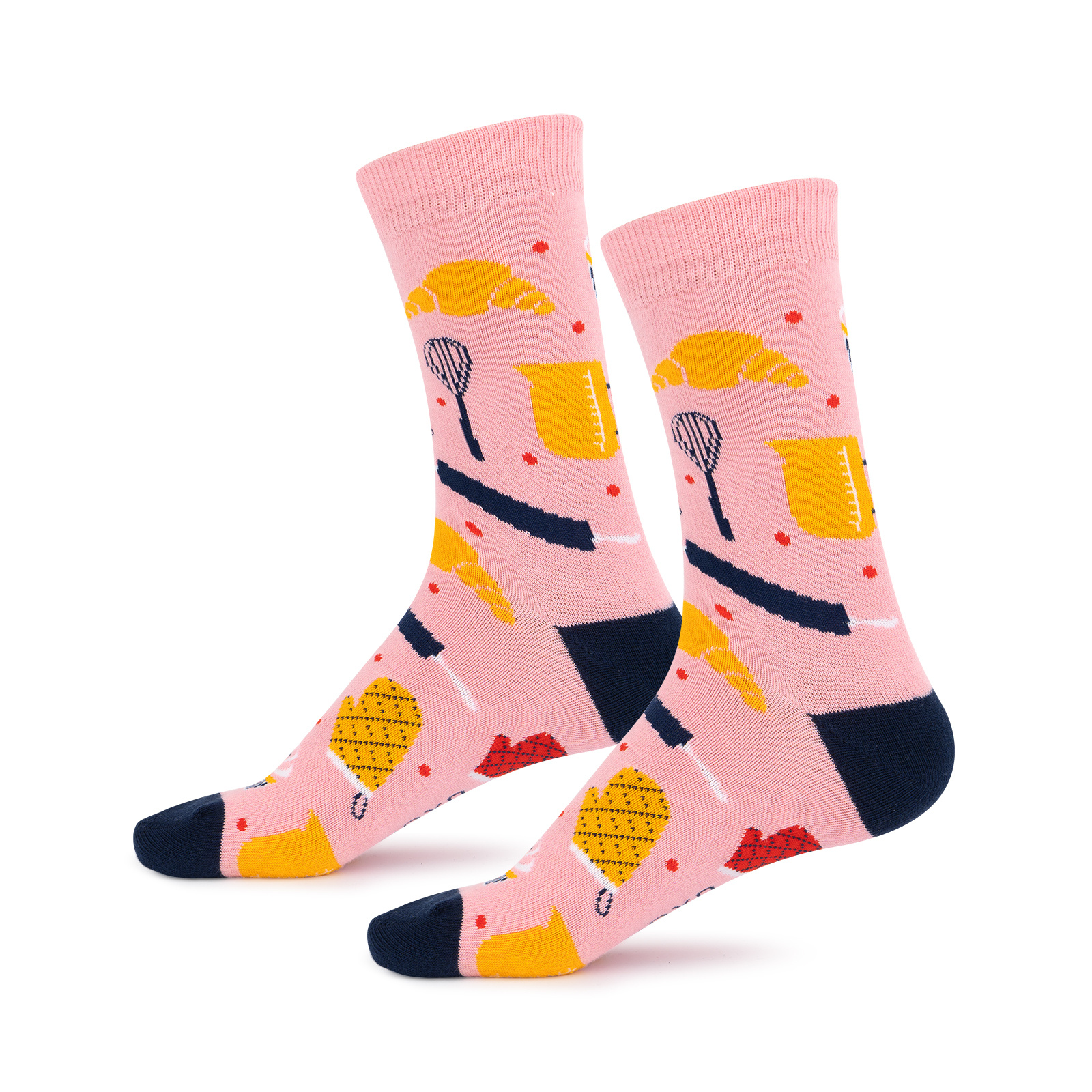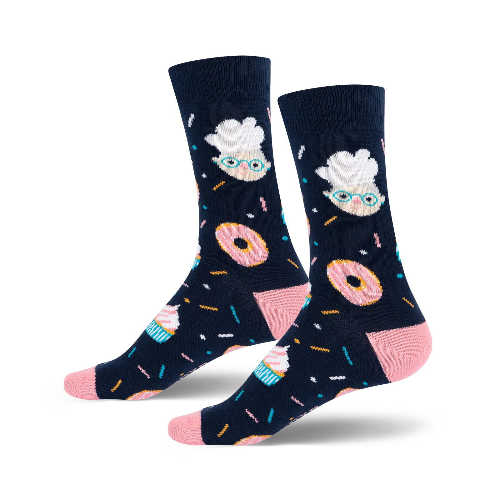Wesołe skarpetki z motywem kucharskim to idealny gadżet, dla osób, które kochają domowe wypieki! Skarpetki są zapakowane w ozdobny kartonik z okienkiem, przez które wyglądają urocze wzorki. Podaruj ten zestaw mamie, cioci, przyjaciółce lub babci np. z okazji Dnia Babci. Zabawne wzory wypełniające skarpetkę staną się inspiracją i umilą czas spędzony przy komponowani nowych pysznych przepisów!