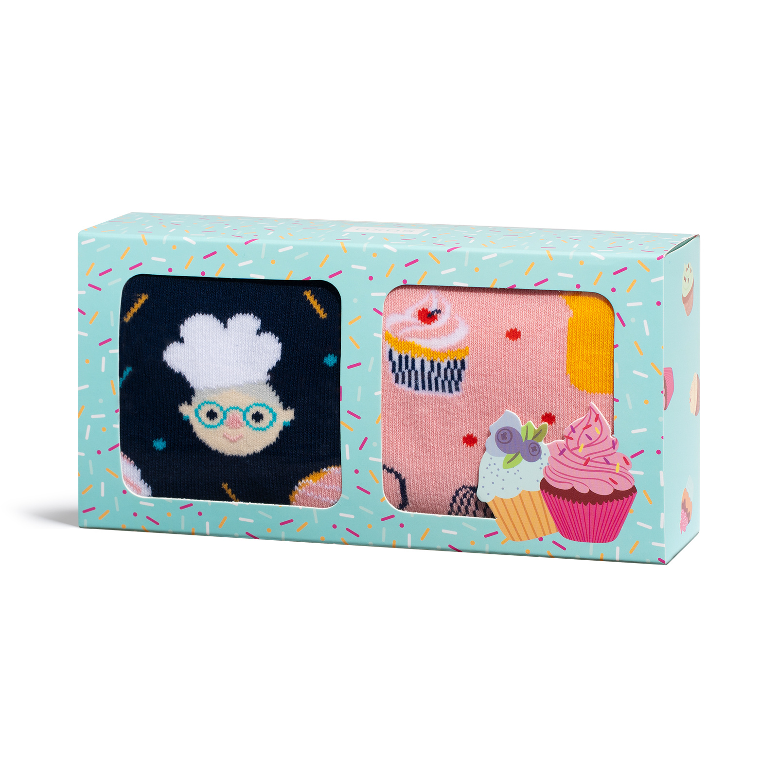 - Dwie pary kolorowych skarpetek w słodkie wzory to idealny pomysł na uroczy podarunek dla bliskiej osoby! Dzięki pięknemu opakowaniu, zyskujesz prezent gotowy bezpośrednio do wręczenia!