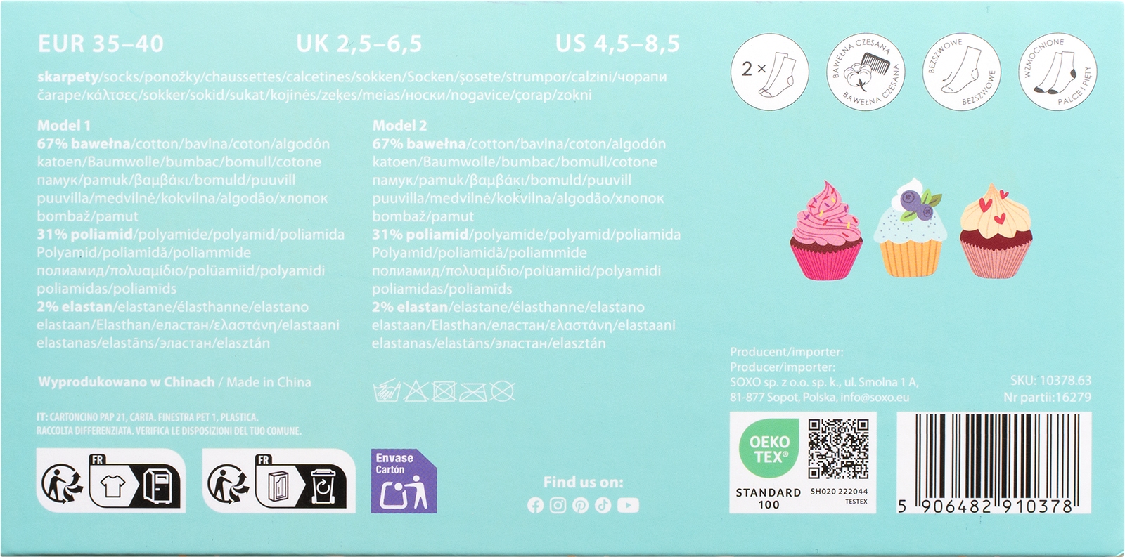 Skarpetki Damskie SOXO domowe wypieki - 2 Pary