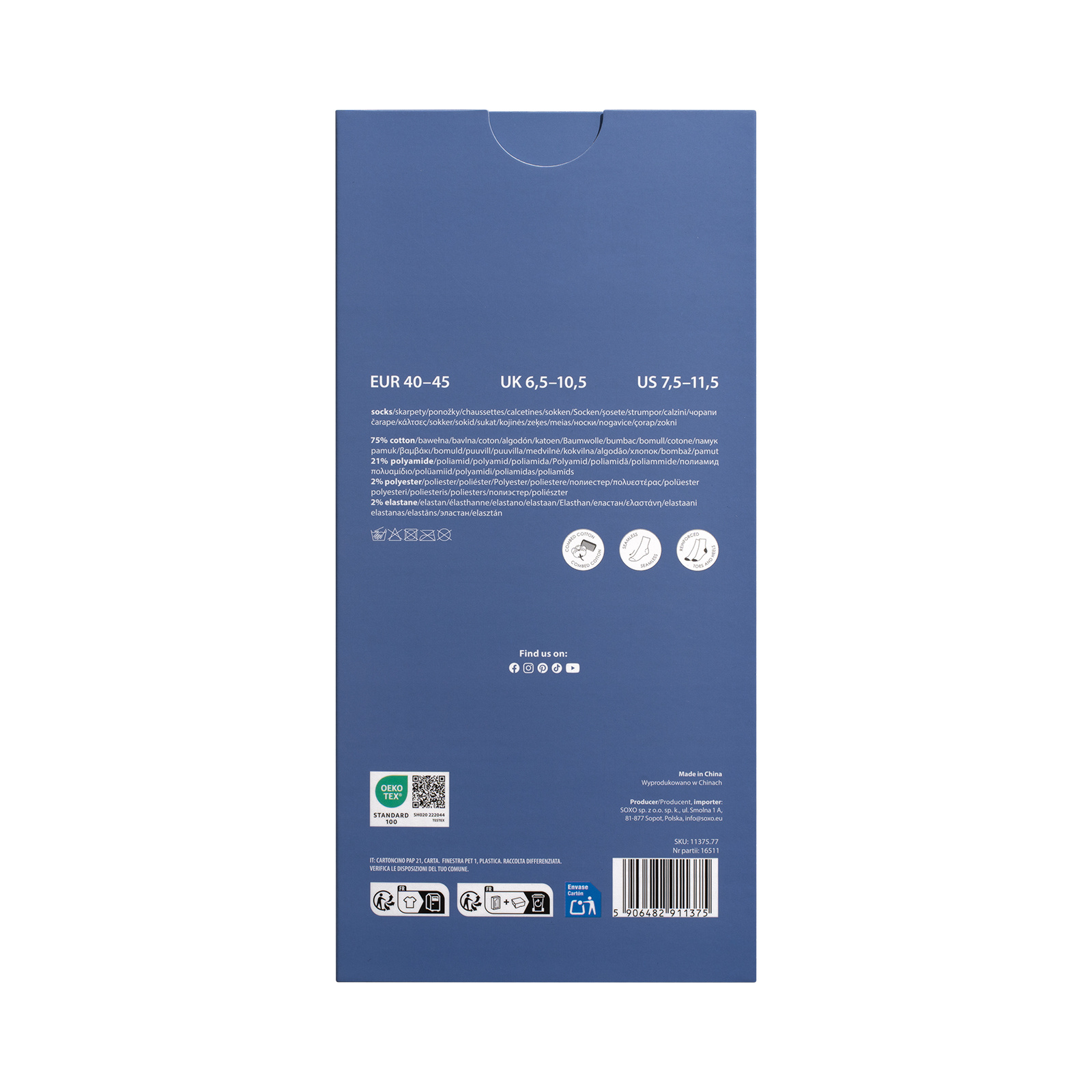 - Co więcej, odpada ryzyko nietrafienia z rozmiarem - Skarpetki występują w uniwersalnym męskim rozmiarze 40-45.
