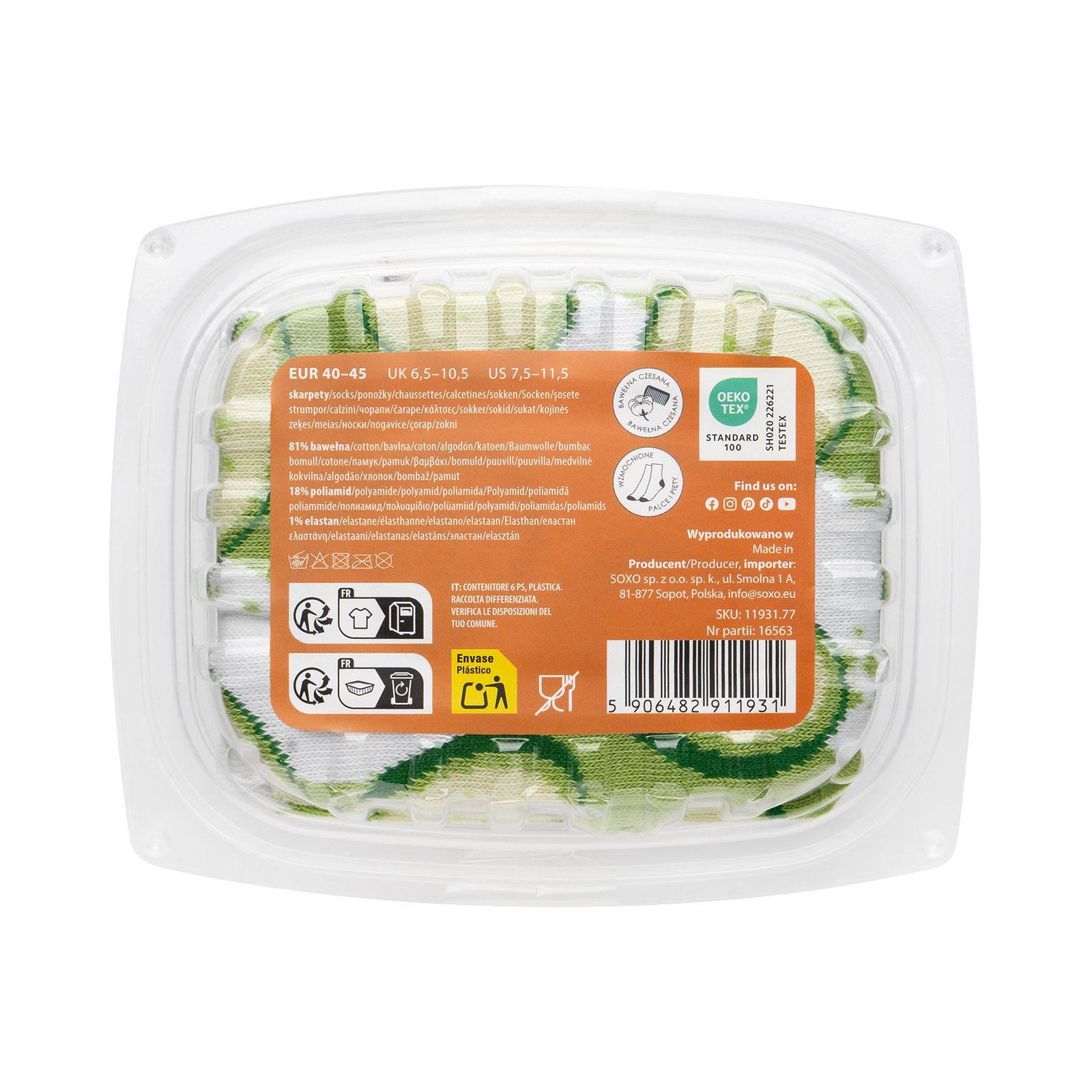 Rozpocznij swój dzień wesołym krokiem i dodaj odrobinę humoru do swojej garderoby dzięki skarpetkom z motywem mizerii! Te oryginalne skarpetki to prawdziwy hit dla wszystkich, którzy cenią sobie niebanalny styl i chcą wnieść trochę radości do codziennych stylizacji. Skarpetki Mizeria to doskonały sposób na pozbycie się nudy – ich zabawny i nietuzinkowy wzór na pewno przyciągnie uwagę i wywoła uśmiech na twarzy każdego, kto je zobaczy.